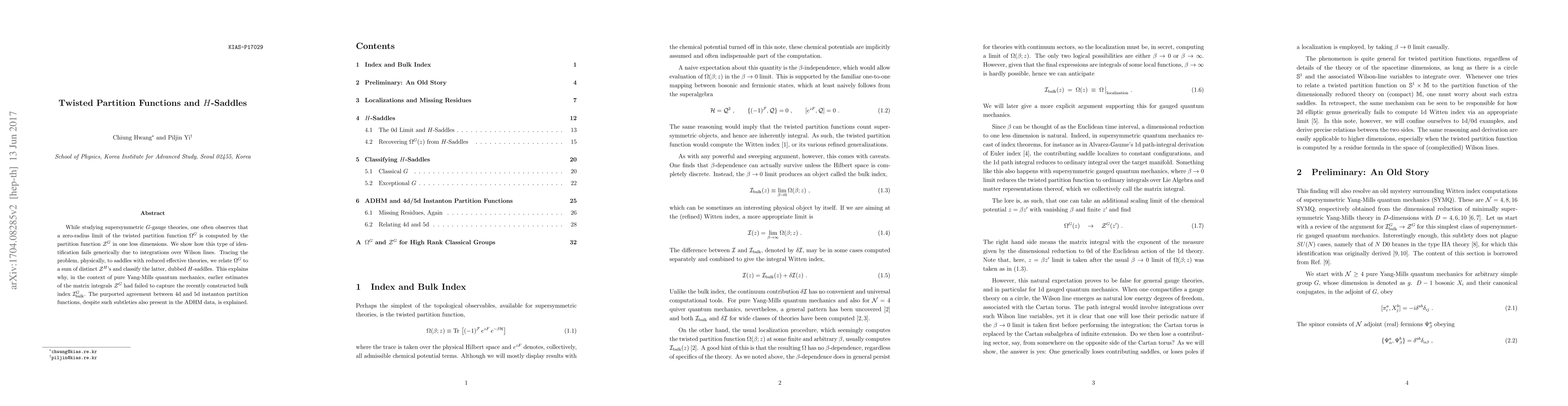 This paper examines the discrepancy in computing the zero-radius limit of the twisted partition function $\Omega^G$ in supersymmetric $G$-gauge theories and identifies the issue with integrations over Wilson lines. It introduces $H$-saddles, distinct partition functions ${\cal Z}^H$, to explain the failure of earlier estimates in capturing the bulk index ${\cal I}^G_{\rm bulk}$ and reconciles the agreement between 4d and 5d instanton partition functions.