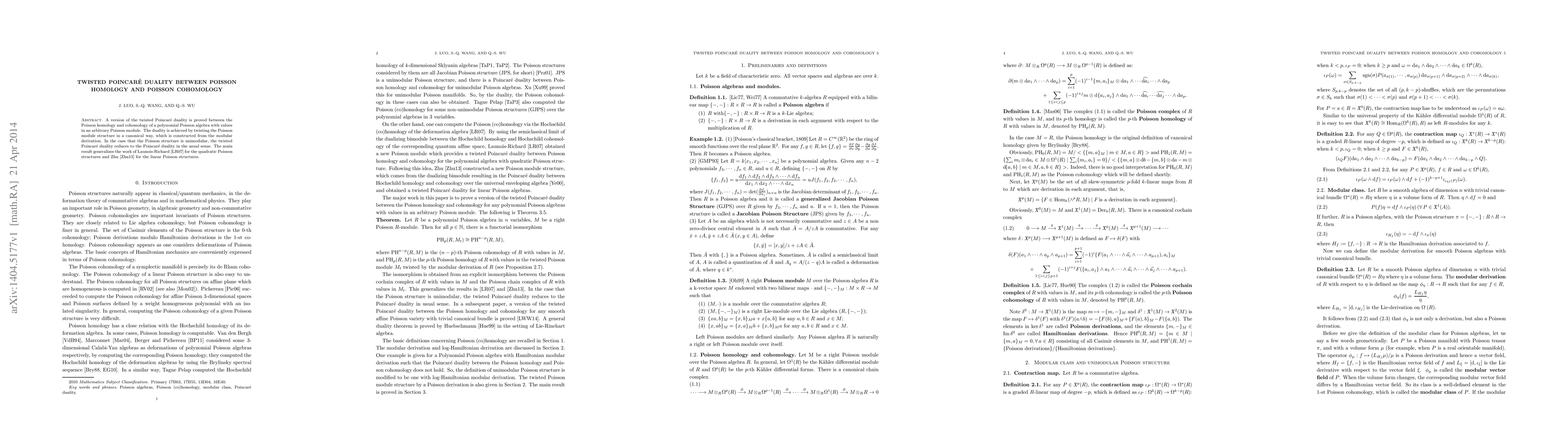 The paper proves a twisted Poincaré duality between Poisson homology and cohomology for polynomial Poisson algebras, employing a canonical twisting through the modular derivation. This duality generalizes prior results for quadratic and linear Poisson structures.