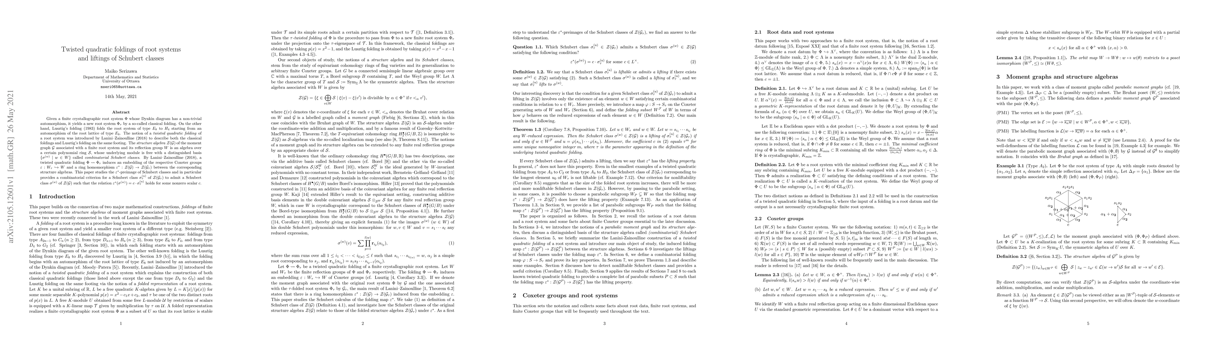 Given a finite crystallographic root system $\Phi$ whose Dynkin diagram has a non-trivial automorphism, it yields a new root system $\Phi_{\tau}$ by a so-called classical folding. On the other hand, Lusztig's folding (1983) folds the root system of type $E_8$ to $H_4$ starting from an automorphism of the root lattice of type $E_8.$ The notion of a twisted quadratic folding of a root system was introduced by Lanini-Zainoulline (2018) to describe both the classical foldings and Lusztig's folding on the same footing. The structure algebra $\mathcal{Z}(\mathcal{G})$ of the moment graph $\mathcal{G}$ associated with a finite root system and its reflection group $W$ is an algebra over a certain polynomial ring $\mathcal{S},$ whose underlying module is free with a distinguished basis $\{\sigma^{(w)} \mid w \in W\}$ called combinatorial Schubert classes. By Lanini-Zainoulline (2018), a twisted quadratic folding $\Phi \rightsquigarrow \Phi_{\tau}$ induces an embedding of the respective Coxeter groups $\varepsilon: W_{\tau} \hookrightarrow W$ and a ring homomorphism $\varepsilon^*: \mathcal{Z}(\mathcal{G}) \rightarrow \mathcal{Z}(\mathcal{G}_{\tau})$ between the corresponding structure algebras. This paper studies the $\varepsilon^*$-preimage of Schubert classes and provides a combinatorial criterion for a Schubert class $\sigma^{(u)}_{\tau}$ of $\mathcal{Z}(\mathcal{G}_{\tau})$ to admit a Schubert class $\sigma^{(w)}$ of $\mathcal{Z}(\mathcal{G})$ such that the relation $\varepsilon^*(\sigma^{(w)}) = c \cdot \sigma^{(u)}_{\tau}$ holds for some nonzero scalar $c.$
