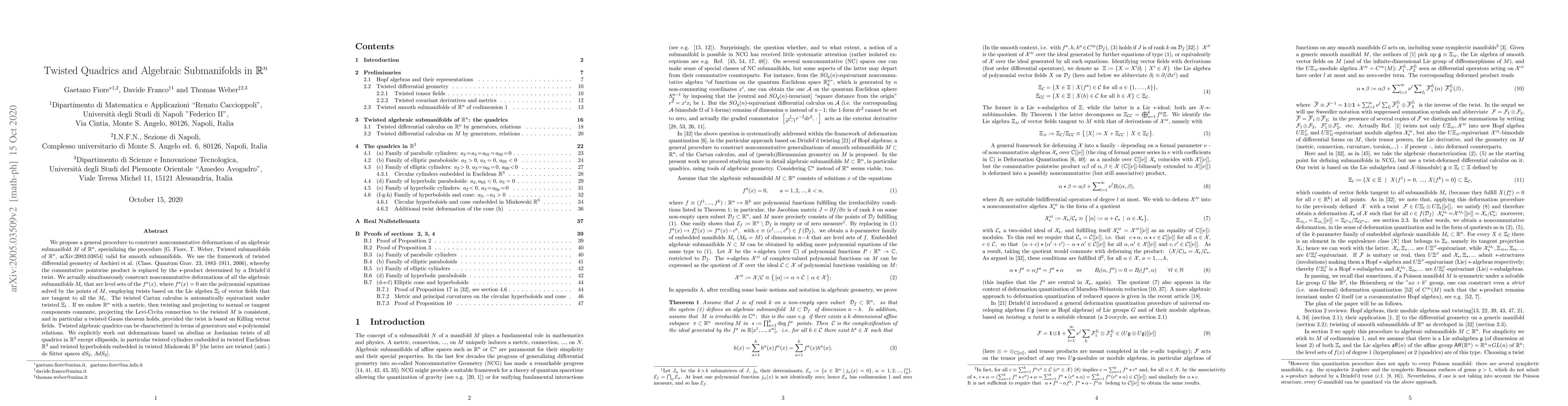 The research uses twisted differential geometry to construct noncommutative deformations of algebraic submanifolds in $oxed{ ext{math-ph gr-qc hep-th math.DG math.MP math.QA}}$