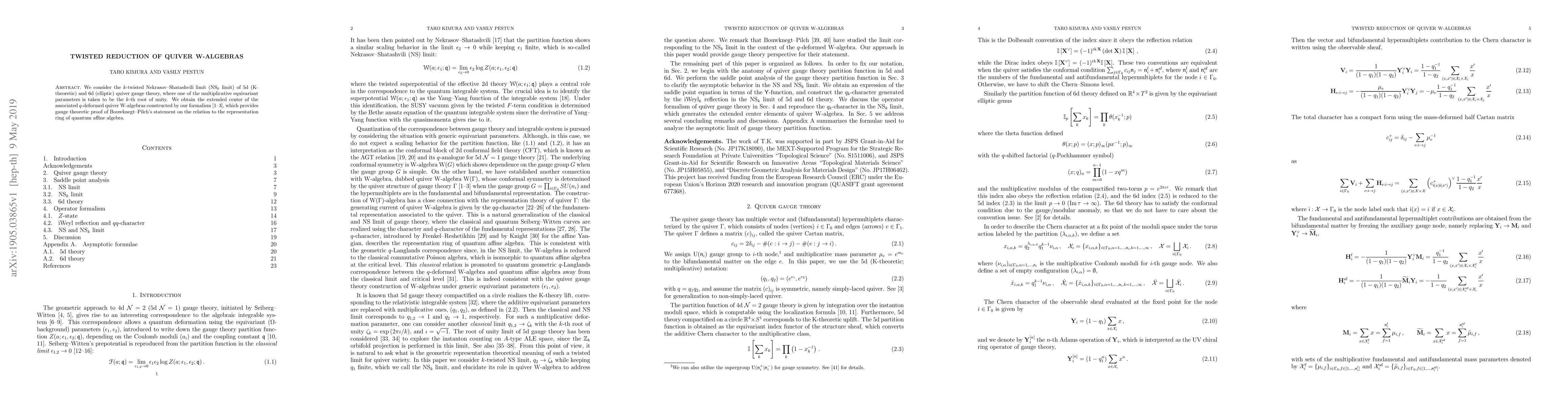 We consider the $k$-twisted Nekrasov-Shatashvili limit (NS$_k$ limit) of 5d (K-theoretic) and 6d (elliptic) quiver gauge theory, where one of the multiplicative equivariant parameters is taken to be the $k$-th root of unity. We obtain the extended center of the associated $q$-deformed quiver W-algebras constructed by our formalism [arXiv:1512.08533; arXiv:1608.04651; arXiv:1705.04410], which provides gauge theoretic proof of Bouwknegt-Pilch's statement on the relation to the representation ring of quantum affine algebra.