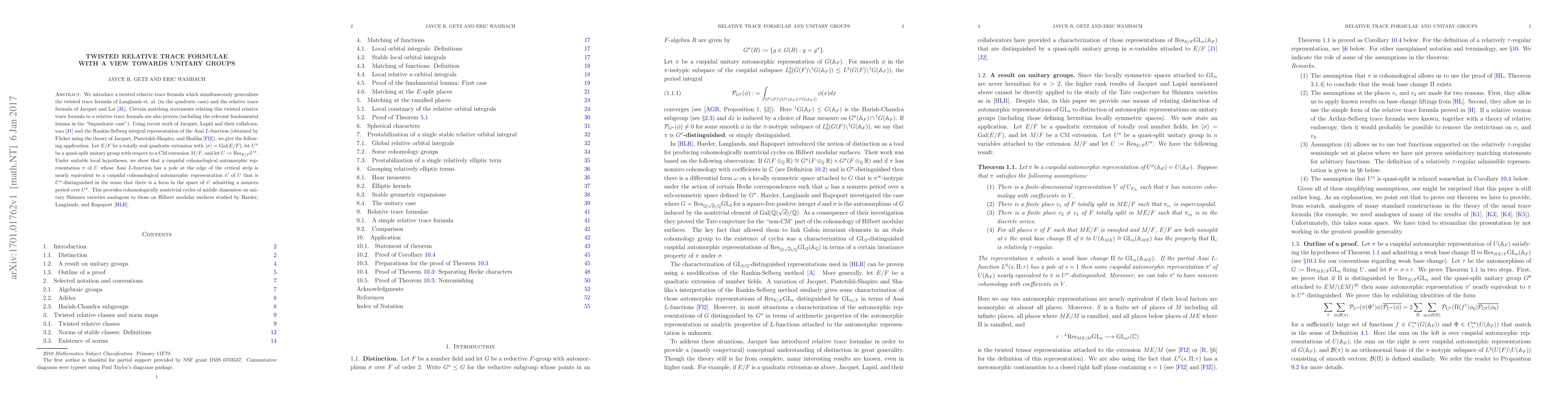 This paper introduces a twisted relative trace formula that generalizes existing trace formulas and proves matching statements. It applies this new formula to show that certain cuspidal cohomological automorphic representations of quasi-split unitary groups are nearly equivalent to distinguished representations, providing nontrivial cycles on unitary Shimura varieties.