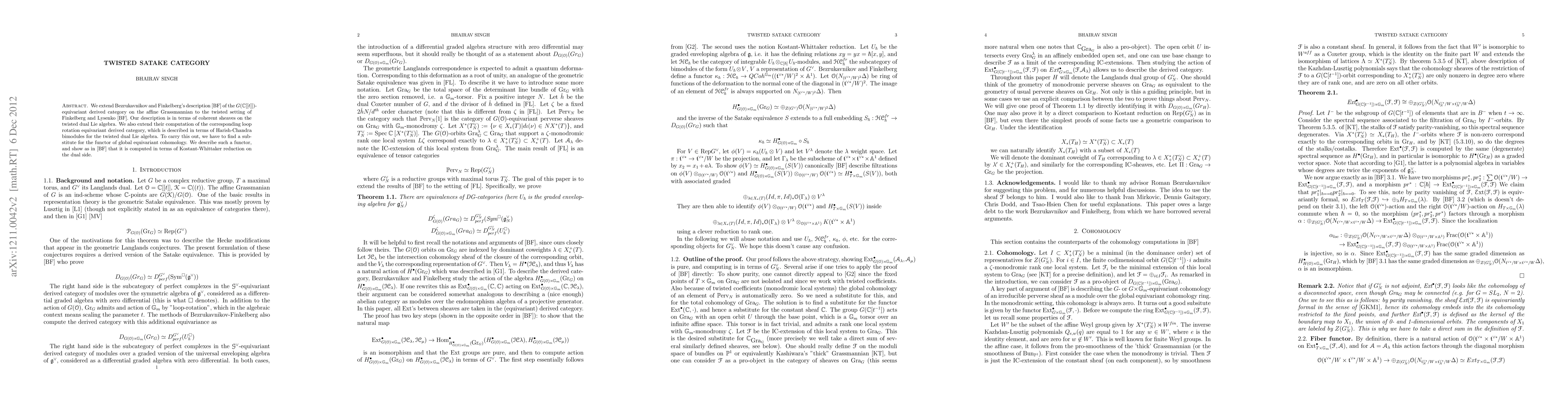 We extend Bezrukavnikov and Finkelberg's description of the G(\C[[t]])-equivariant derived category on the affine Grassmannian to the twisted setting of Finkelberg and Lysenko. Our description is in terms of coherent sheaves on the twisted dual Lie algebra. We also extend their computation of the corresponding loop rotation equivariant derived category, which is described in terms of Harish-Chandra bimodules for the twisted dual Lie algebra. To carry this out, we have to find a substitute for the functor of global equivariant cohomology. We describe such a functor, and show as in Bezrukavnikov-Finkelberg that it is computed in terms of Kostant-Whittaker reduction on the dual side.