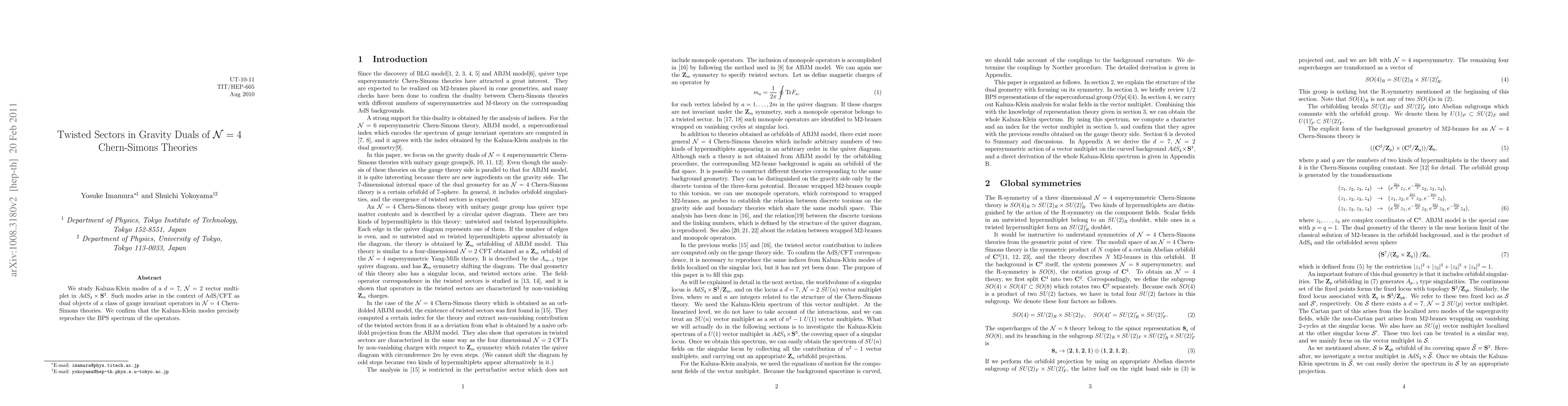 Researchers studied Kaluza-Klein modes in a d=7, N=2 vector multiplet in AdS_4 x S^3, confirming they reproduce the BPS spectrum of certain gauge-invariant operators in N=4 Chern-Simons theories.