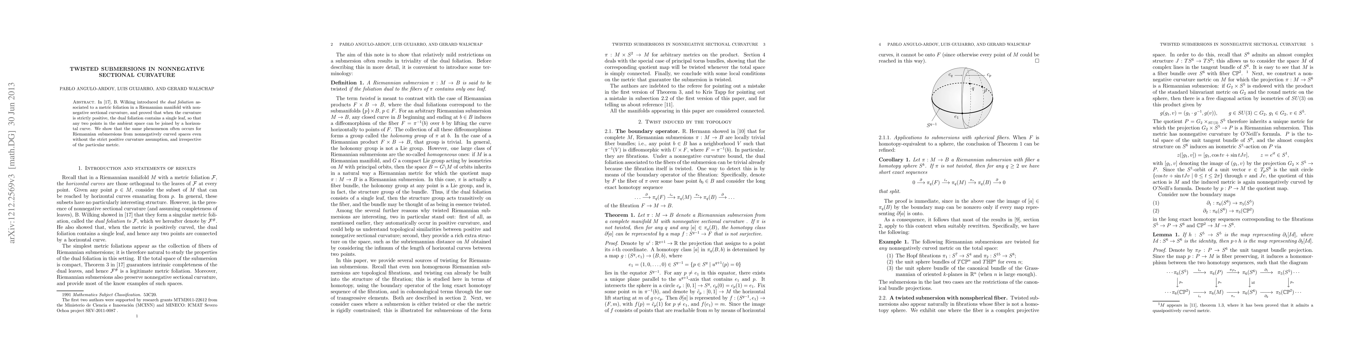 Summary: This paper explores the phenomenon introduced by B. Wilking regarding dual foliations in nonnegatively curved Riemannian manifolds, demonstrating that nonnegatively curved Riemannian submersions often exhibit similar properties without requiring strictly positive curvature.