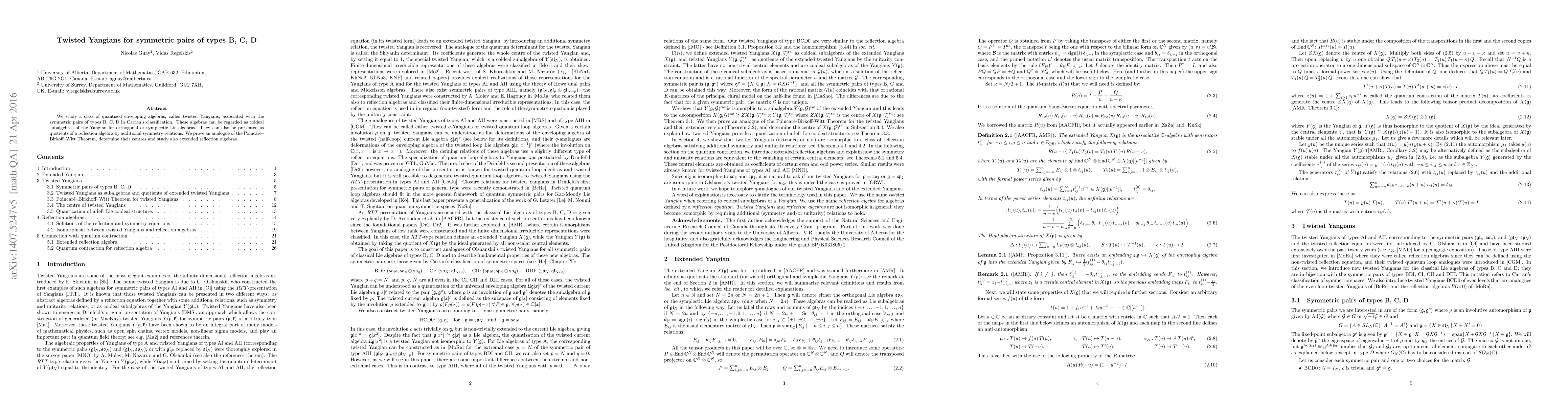 This paper investigates twisted Yangians linked to symmetric pairs of types B, C, D, showing they are coideal subalgebras of extended Yangians for orthogonal or symplectic Lie algebras and quotients of reflection algebras. The authors prove a Poincaré-Birkhoff-Witt analogue and analyze their centres and extended reflection algebras.