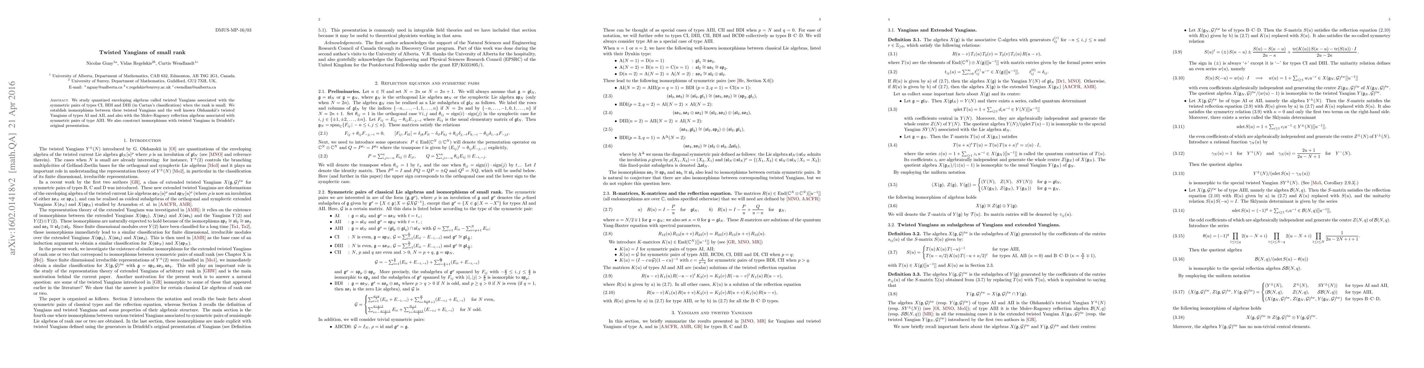 This paper investigates quantized enveloping algebras known as twisted Yangians for small rank symmetric pairs of types CI, BDI, and DIII. It establishes isomorphisms between these twisted Yangians and Olshanskii's twisted Yangians of types AI and AII, as well as with Molev-Ragoucy reflection algebras for type AIII symmetric pairs and Drinfeld's original presentation of twisted Yangians.