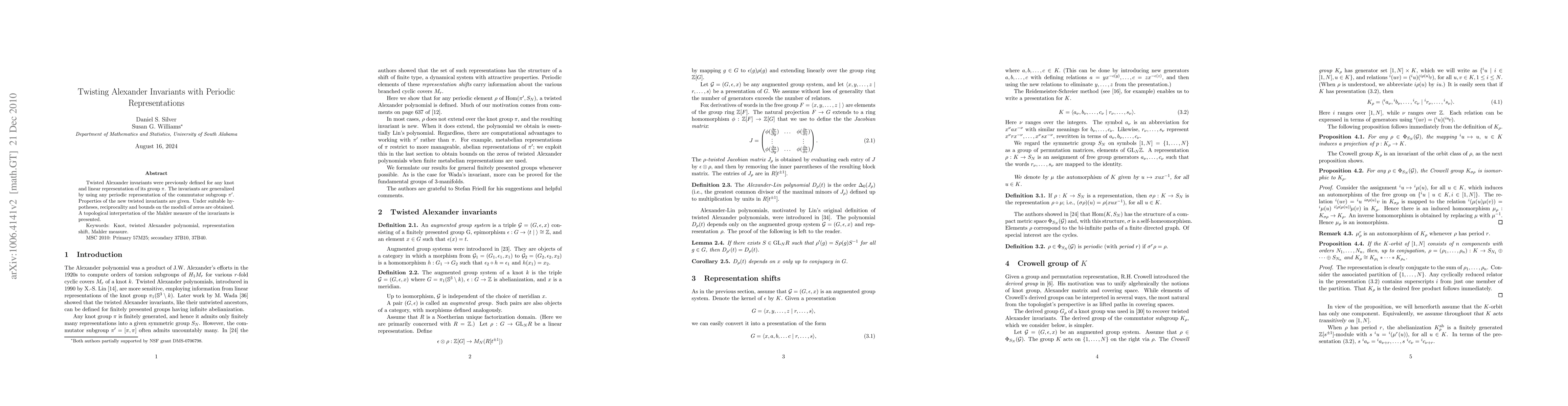 Twisted Alexander invariants have been defined for any knot and linear representation of its group. The invariants are generalized for any periodic representation of the commutator subgroup of the knot group. Properties of the new twisted invariants are given. Under suitable hypotheses, reciprocality and bounds on the moduli of zeros are obtained. A topological interpretation of the Mahler measure of the invariants is presented. Keywords: Knot, twisted Alexander polynomial, representation shift, Mahler measure.