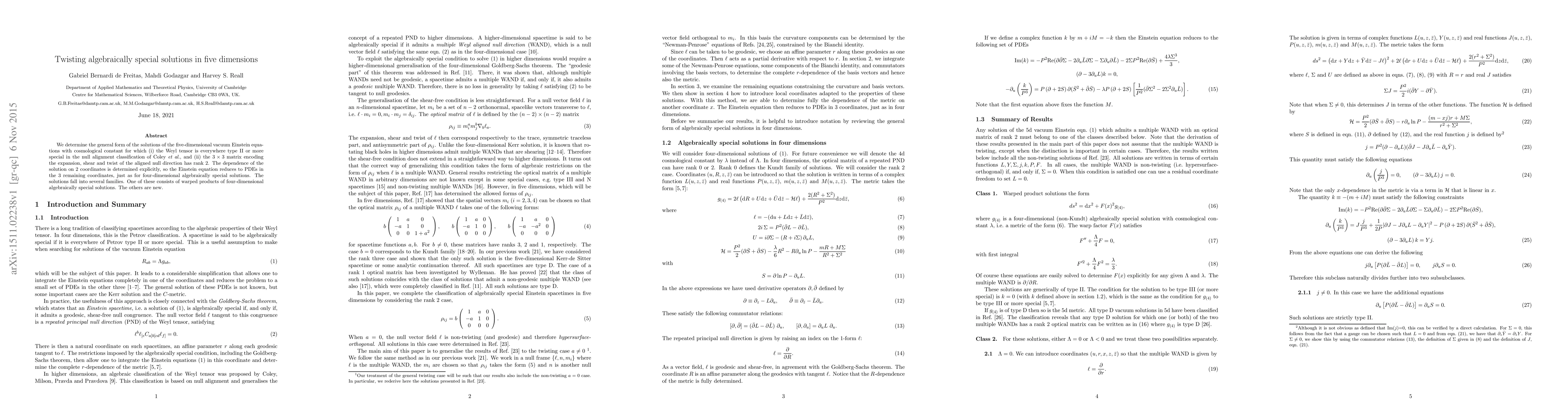 This paper identifies the general form of five-dimensional vacuum Einstein solutions with a cosmological constant where the Weyl tensor is type II or more special, and the expansion, shear, and twist matrix has rank 2. The solutions are categorized into families, including warped products of four-dimensional algebraically special solutions, alongside new, distinct families.