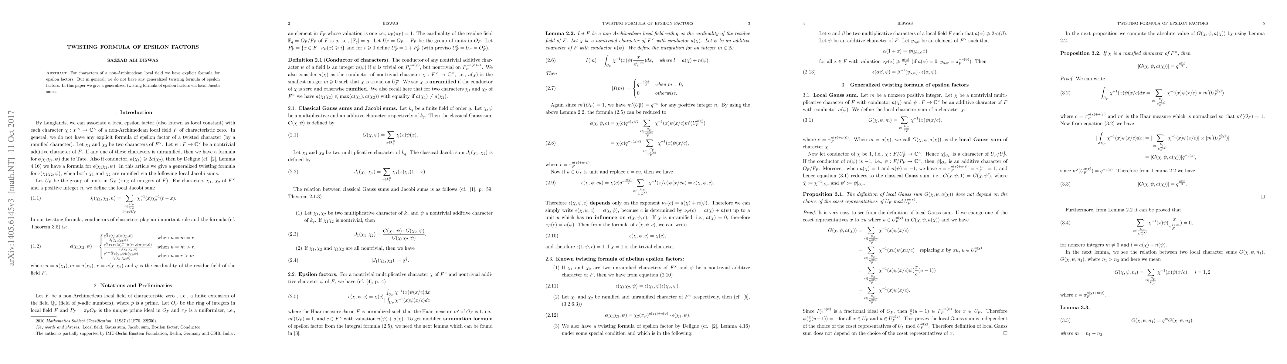 This paper presents a generalized twisting formula for epsilon factors associated with characters of non-Archimedean local fields, utilizing local Jacobi sums for the derivation.