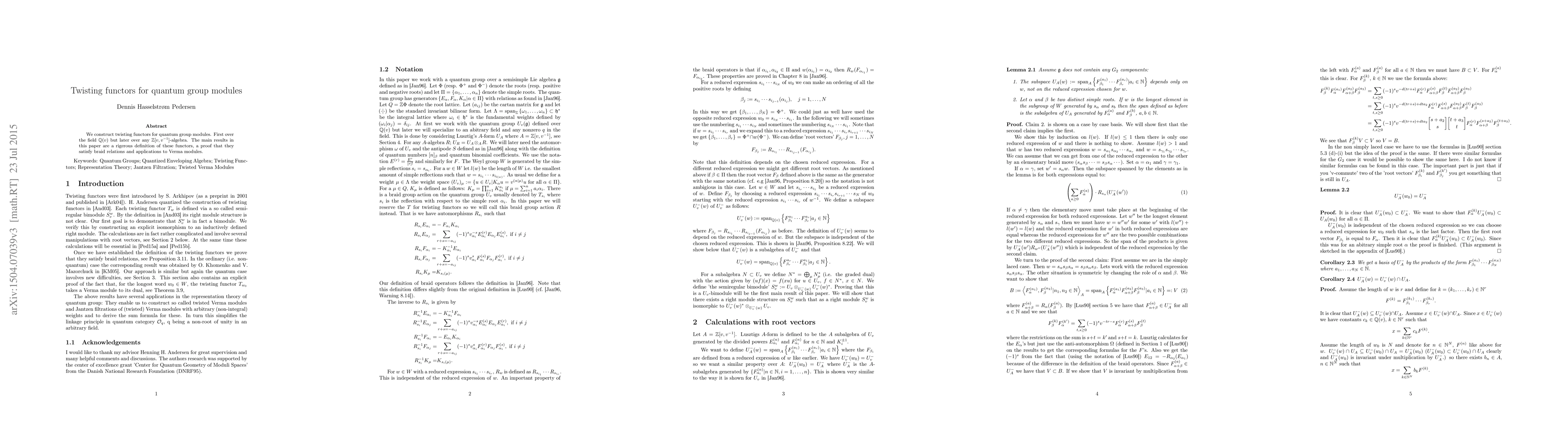 This paper rigorously defines twisting functors for quantum group modules, proving they satisfy braid relations and applying these to Verma modules, extending the construction from $\mathbb{Q}(v)$ to any $\mathbb{Z}[v,v^{-1}]$-algebra.