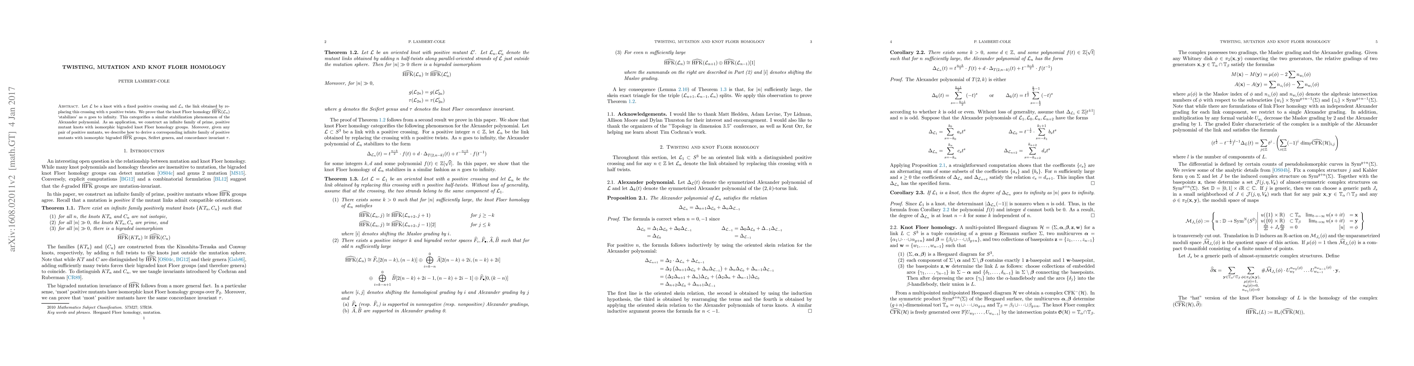 Let $\mathcal{L}$ be a knot with a fixed positive crossing and $\mathcal{L}_n$ the link obtained by replacing this crossing with $n$ positive twists. We prove that the knot Floer homology $\widehat{\text{HFK}}(\mathcal{L}_n)$ `stabilizes' as $n$ goes to infinity. This categorifies a similar stabilization phenomenon of the Alexander polynomial. As an application, we construct an infinite family of prime, positive mutant knots with isomorphic bigraded knot Floer homology groups. Moreover, given any pair of positive mutants, we describe how to derive a corresponding infinite family positive mutants with isomorphic bigraded $\widehat{\text{HFK}}$ groups, Seifert genera, and concordance invariant $\tau$.