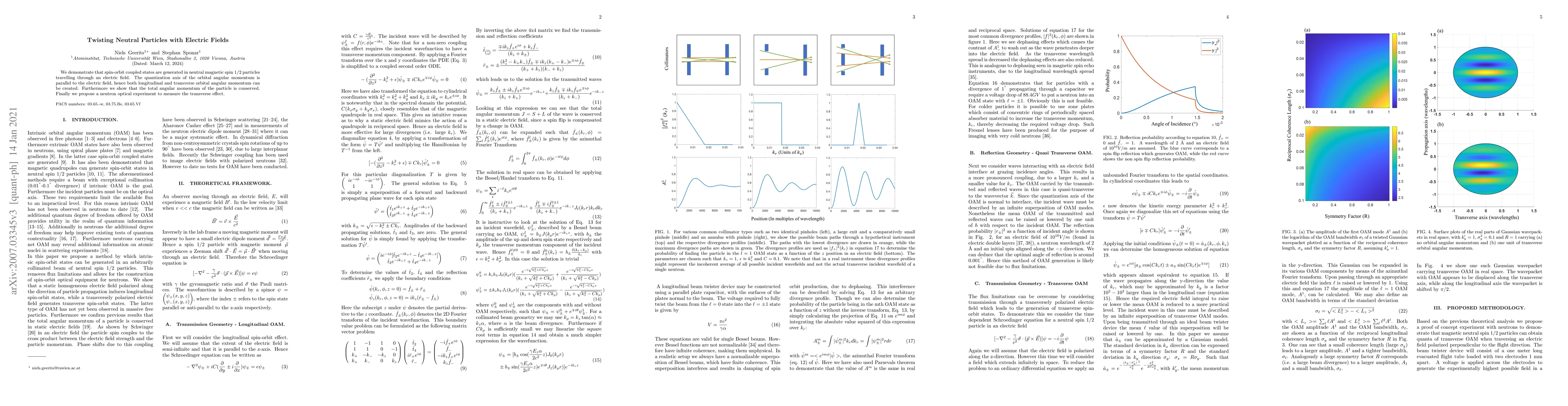 We demonstrate that spin-orbit coupled states are generated in neutral magnetic spin 1/2 particles travelling through an electric field. The quantization axis of the orbital angular momentum is parallel to the electric field, hence both longitudinal and transverse orbital angular momentum can be created. Furthermore we show that the total angular momentum of the particle is conserved. Finally we propose a neutron optical experiment to measure the transverse effect.