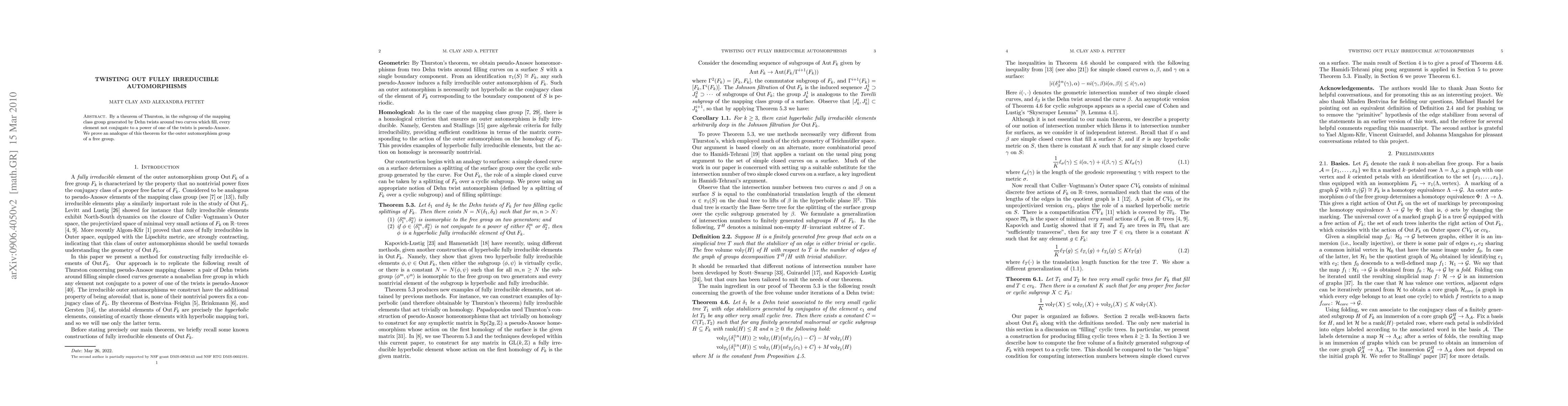 By a theorem of Thurston, in the subgroup of the mapping class group generated by Dehn twists around two curves that fill, every element not conjugate to a power of one of the twist is pseudo-Anosov. We prove an analogue of this theorem for the outer automorphism group of a free group.