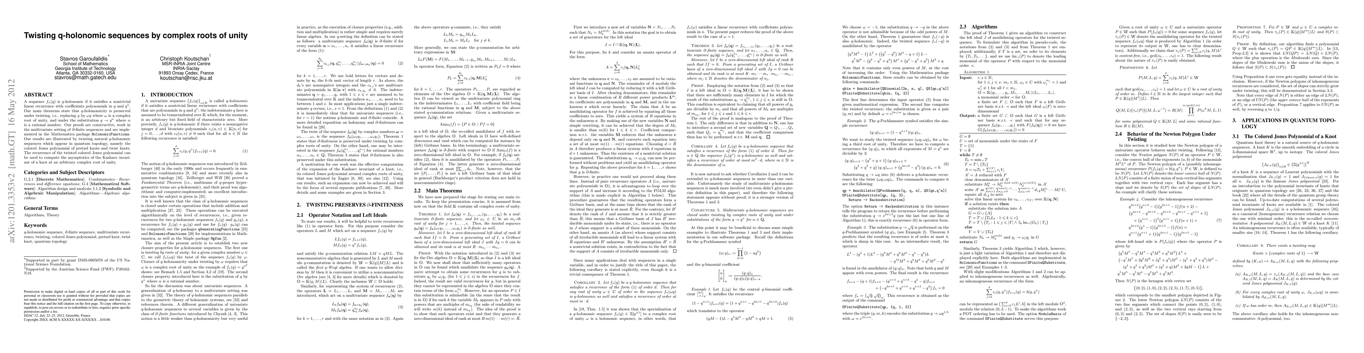 A sequence $f_n(q)$ is $q$-holonomic if it satisfies a nontrivial linear recurrence with coefficients polynomials in $q$ and $q^n$. Our main theorems state that $q$-holonomicity is preserved under twisting, i.e., replacing $q$ by $\omega q$ where $\omega$ is a complex root of unity, and under the substitution $q \to q^{\alpha}$ where $\alpha$ is a rational number. Our proofs are constructive, work in the multivariate setting of $\partial$-finite sequences and are implemented in the Mathematica package HolonomicFunctions. Our results are illustrated by twisting natural $q$-holonomic sequences which appear in quantum topology, namely the colored Jones polynomial of pretzel knots and twist knots. The recurrence of the twisted colored Jones polynomial can be used to compute the asymptotics of the Kashaev invariant of a knot at an arbitrary complex root of unity.