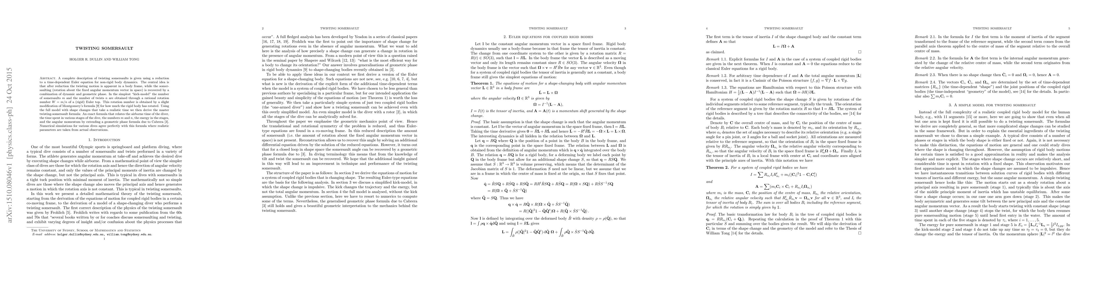 Researchers developed a mathematical model to describe twisting somersaults in diving using a time-dependent Euler equation, relating airborne time, energy, and angular momentum to the number of twists and somersaults.