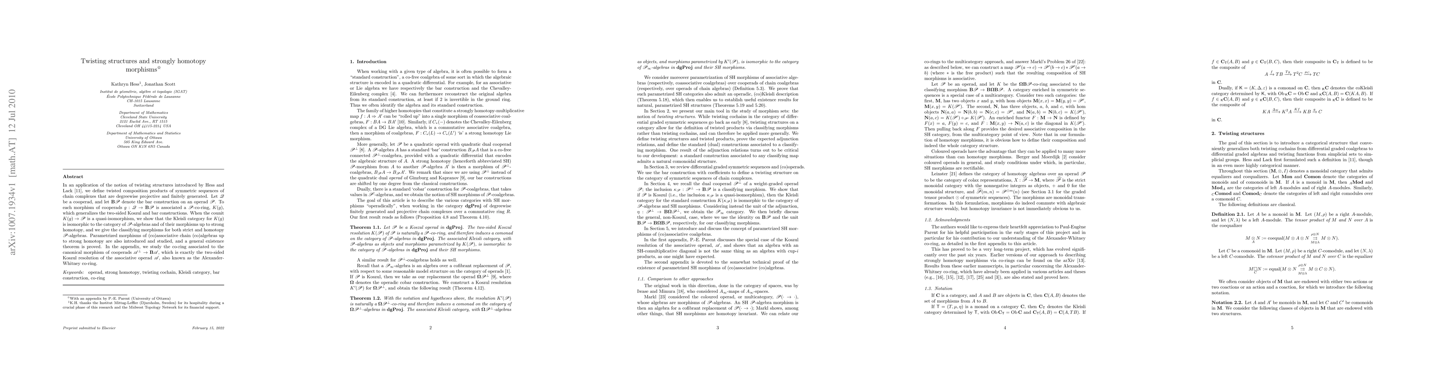 In an application of the notion of twisting structures introduced by Hess and Lack, we define twisted composition products of symmetric sequences of chain complexes that are degreewise projective and finitely generated. Let Q be a cooperad and let BP be the bar construction on the operad P. To each morphism of cooperads g from Q to BP is associated a P-co-ring, K(g), which generalizes the two-sided Koszul and bar constructions. When the co-unit from K(g) to P is a quasi-isomorphism, we show that the Kleisli category for K(g) is isomorphic to the category of P-algebras and of their morphisms up to strong homotopy, and we give the classifying morphisms for both strict and homotopy P-algebras. Parametrized morphisms of (co)associative chain (co)algebras up to strong homotopy are also introduced and studied, and a general existence theorem is proved. In the appendix, we study the particular case of the two-sided Koszul resolution of the associative operad.