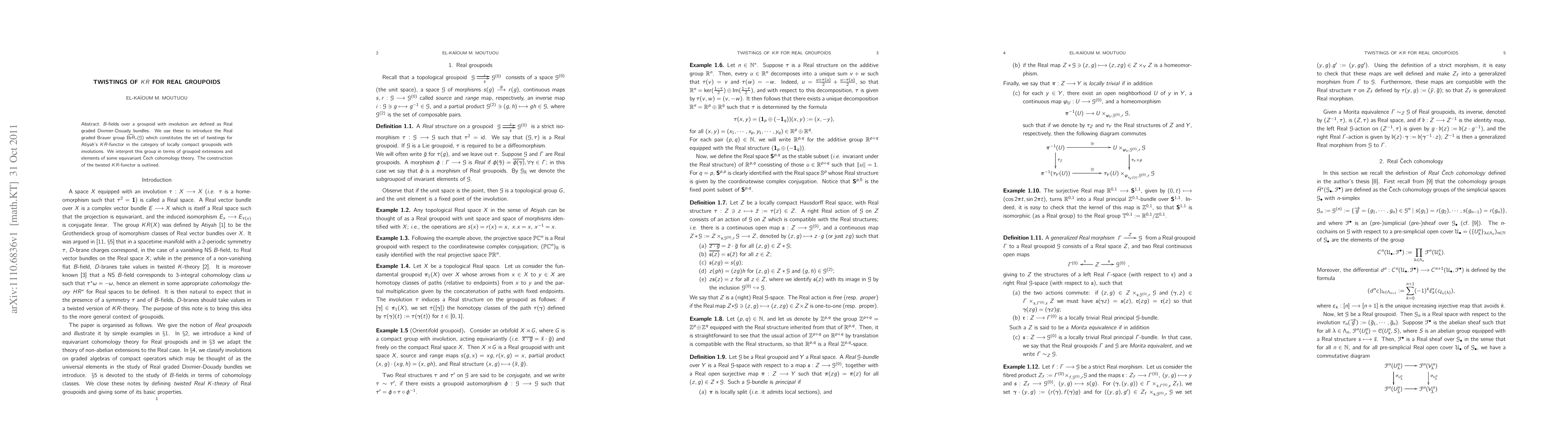 B-fields over a groupoid with involution are defined as Real graded Dixmier-Douady bundles. We use these to introduce the Real graded Brauer group which constitutes the set of twistings for Atiyah's KR-functor in the category of locally compact groupoids with involutions. We interpret this group in terms of groupoid extensions and elements of some equivariant Cech cohomology theory. The construction of the twisted KR-functor is outlined.