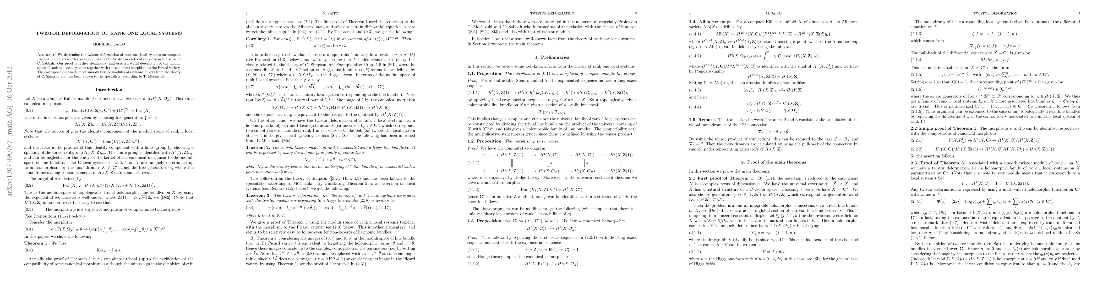 This paper shows how to deform rank one local systems on compact Kaehler manifolds using twistor modules, with a focus on its implications for the theory of twistor modules.