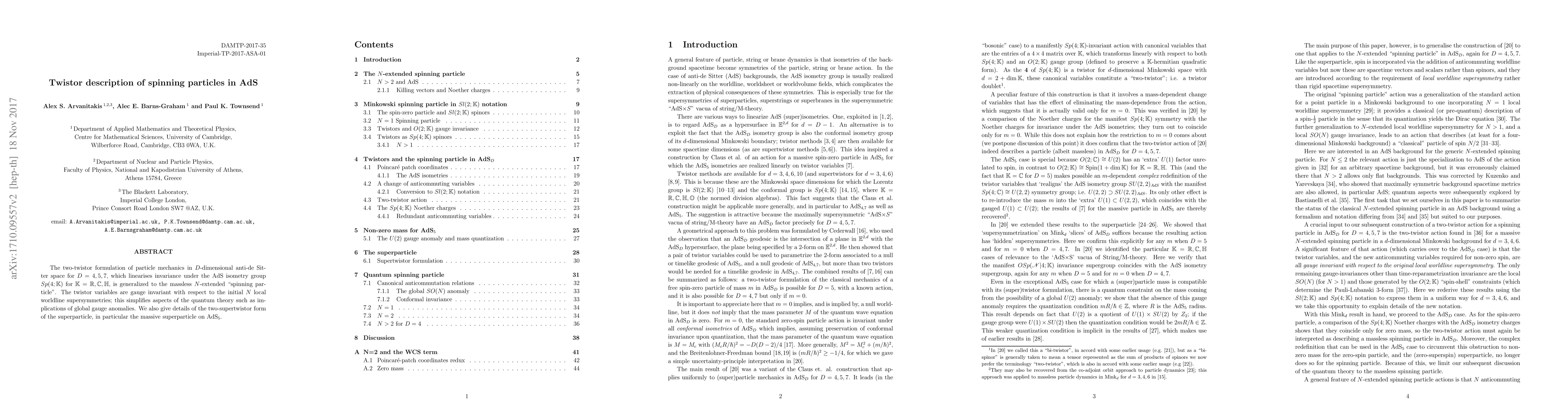 This paper extends a mathematical framework to describe spinning particles in anti-de Sitter space using twistor variables, simplifying quantum theory implications.