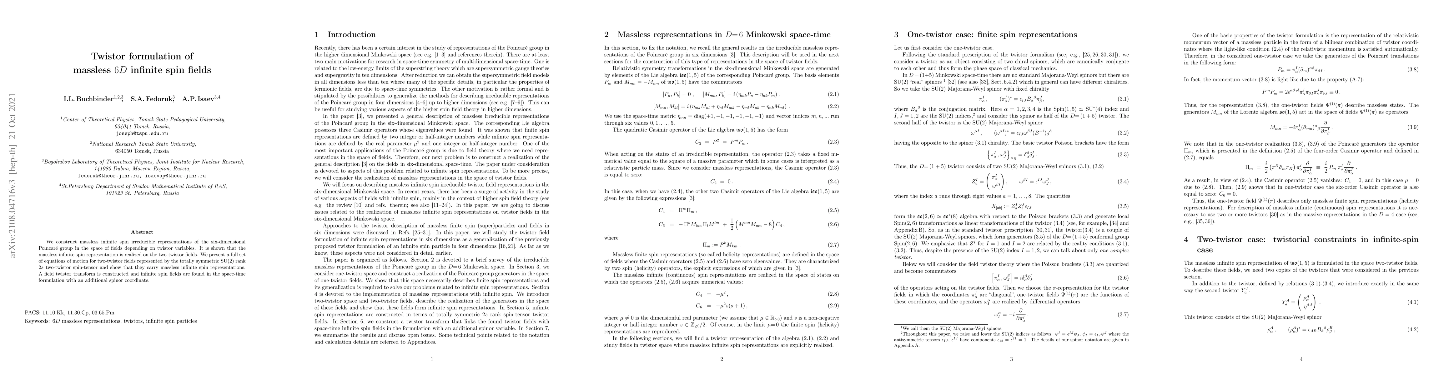 The paper presents a detailed twistor formulation for massless infinite spin fields in six dimensions, including the derivation of equations of motion and a field twistor transform.
