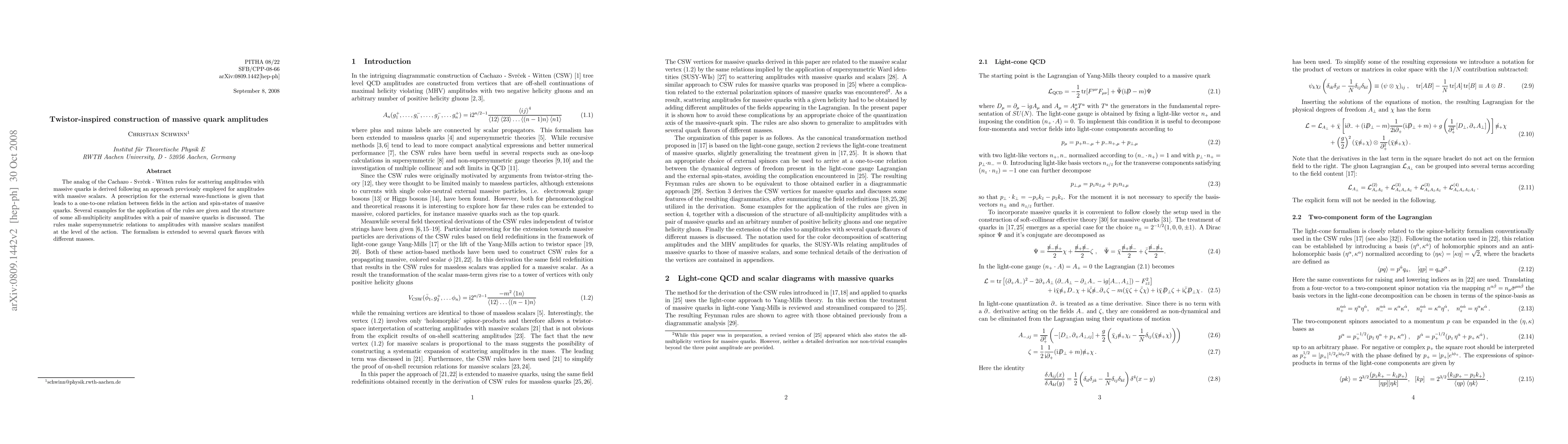 The analog of the Cachazo-Svrvcek-Witten rules for scattering amplitudes with massive quarks is derived following an approach previously employed for amplitudes with massive scalars. A prescription for the external wave-functions is given that leads to a one-to one relation between fields in the action and spin-states of massive quarks. Several examples for the application of the rules are given and the structure of some all-multiplicity amplitudes with a pair of massive quarks is discussed. The rules make supersymmetric relations to amplitudes with massive scalars manifest at the level of the action. The formalism is extended to several quark flavors with different masses.
