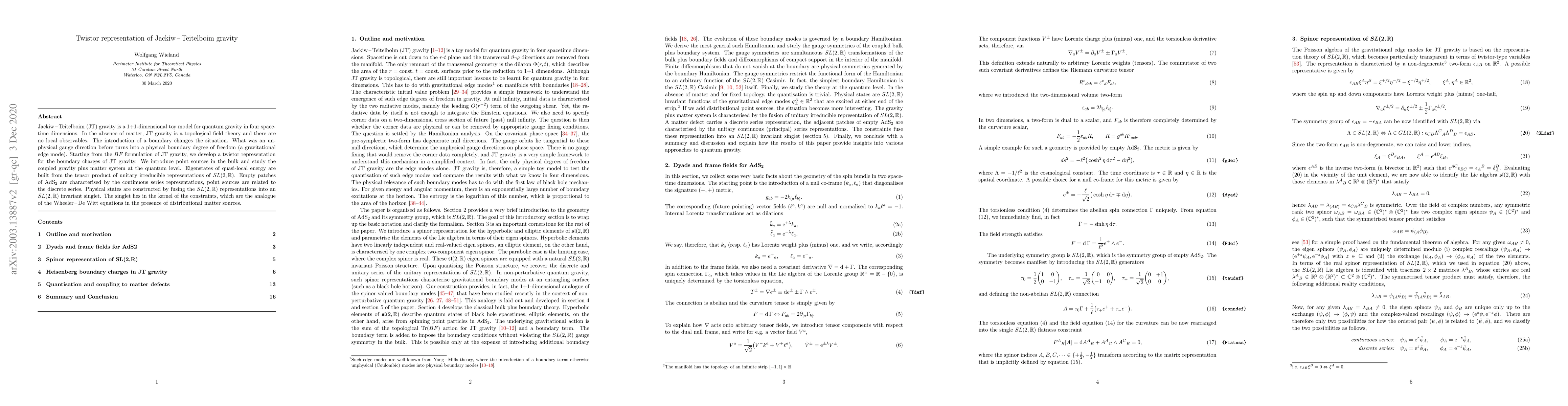 This paper develops a twistor representation for Jackiw-Teitelboim gravity, revealing that boundary charges become a physical degree of freedom when matter is introduced. The approach builds eigenstates from SL(2,R) representations and constructs physical states as an invariant singlet in the kernel of constraints.