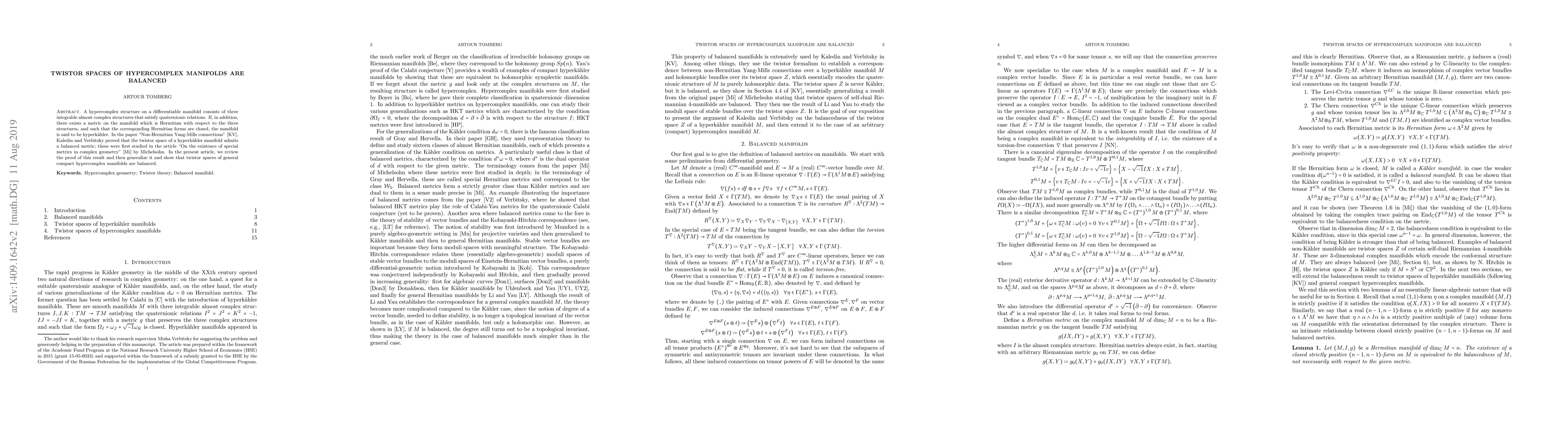 This paper reviews and generalizes the proof that the twistor space of a hyperkaehler manifold is balanced, extending the result to show that twistor spaces of general compact hypercomplex manifolds also possess a balanced metric.