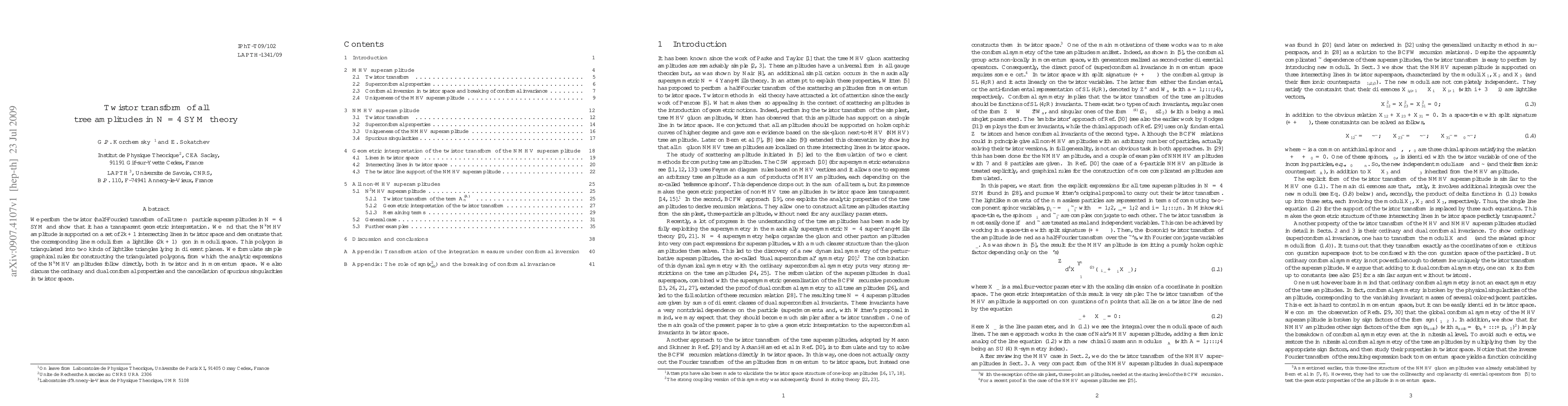 The paper presents a twistor transform of tree-level amplitudes in N=4 SYM theory, revealing a geometric interpretation where N^kMHV amplitudes correspond to intersecting lines forming lightlike polygons in twistor space, with simple graphical rules yielding the amplitudes' analytic expressions. It also addresses conformal properties and singularity cancellation in twistor space.