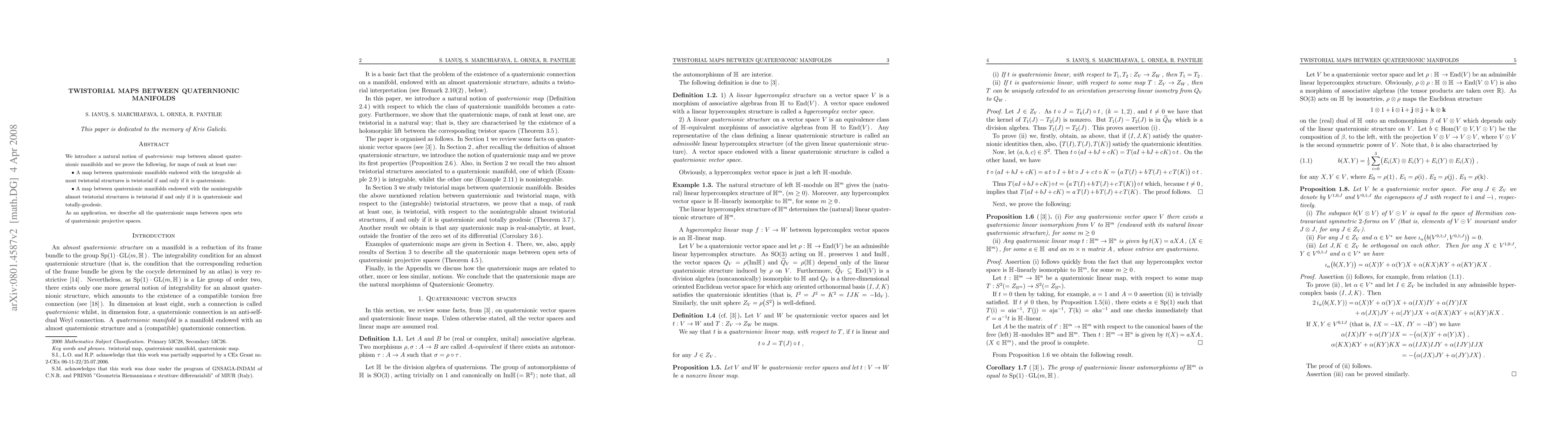 This paper defines twistorial maps between almost quaternionic manifolds and proves that such maps are twistorial if and only if they are quaternionic under integrable structures, and if they are both quaternionic and totally-geodesic under nonintegrable structures. An application describes quaternionic maps between open sets of quaternionic projective spaces.
