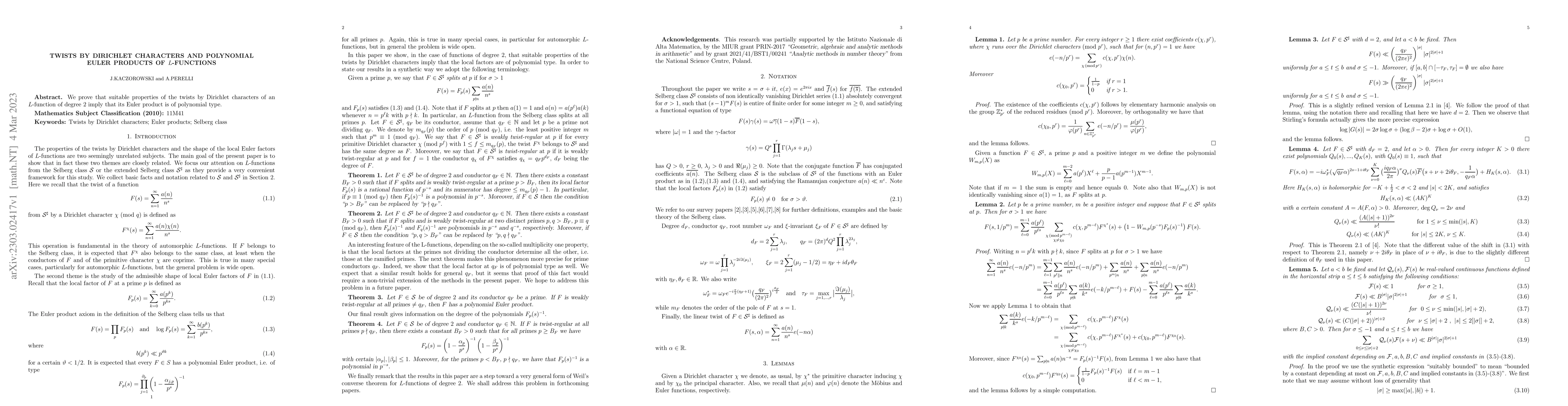 Summary: This paper demonstrates that specific twists by Dirichlet characters of a degree 2 L-function lead to its Euler product being of polynomial type, establishing a connection between character twists and the structure of L-functions.