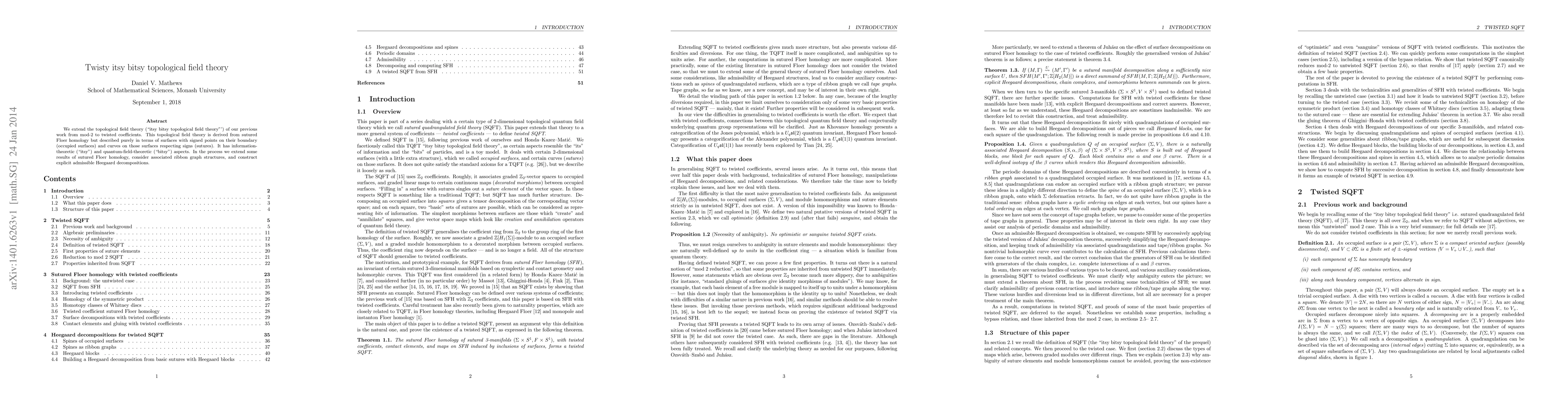 We extend the topological field theory (``itsy bitsy topological field theory"') of our previous work from mod-2 to twisted coefficients. This topological field theory is derived from sutured Floer homology but described purely in terms of surfaces with signed points on their boundary (occupied surfaces) and curves on those surfaces respecting signs (sutures). It has information-theoretic (``itsy'') and quantum-field-theoretic (``bitsy'') aspects. In the process we extend some results of sutured Floer homology, consider associated ribbon graph structures, and construct explicit admissible Heegaard decompositions.