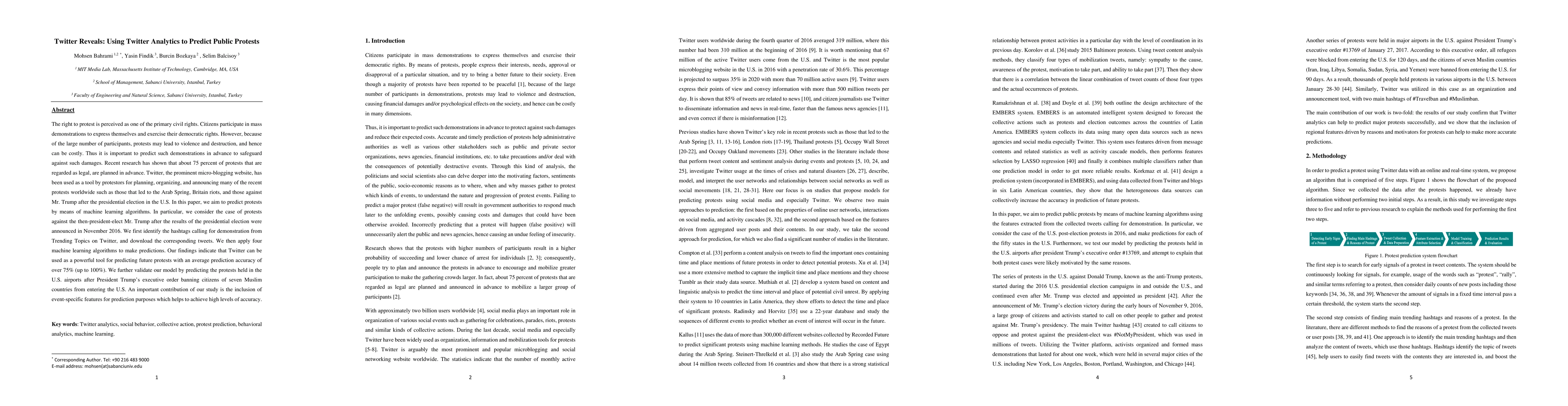 Researchers used Twitter analytics to predict public protests with an accuracy of over 75%, showing that Twitter can be a powerful tool for forecasting future demonstrations.