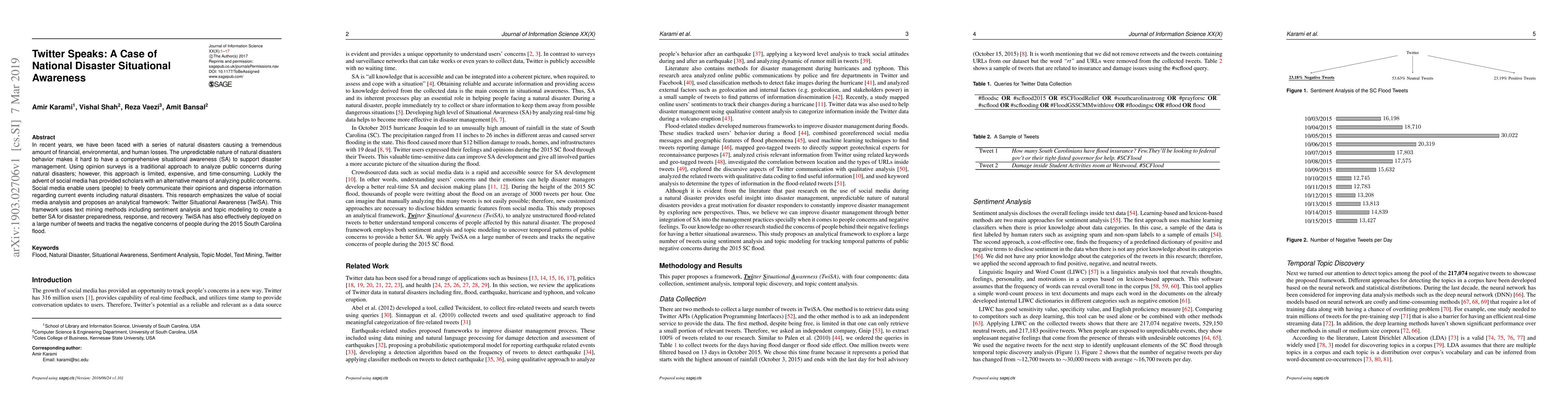 This paper proposes the Twitter Situational Awareness (TwiSA) framework to enhance disaster management through social media analysis. TwiSA utilizes text mining techniques to analyze Twitter data for better disaster preparedness and response, demonstrated through its application during the 2015 South Carolina flood.