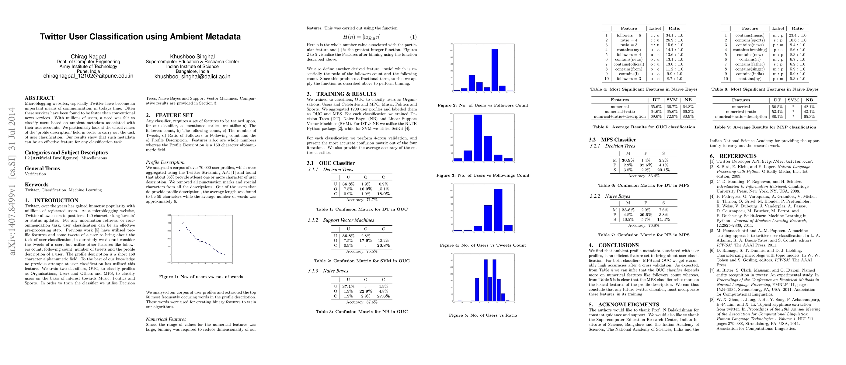This study demonstrates that Twitter user classification can be effectively done using ambient metadata, particularly the profile description field, showing its potential for various classification tasks.