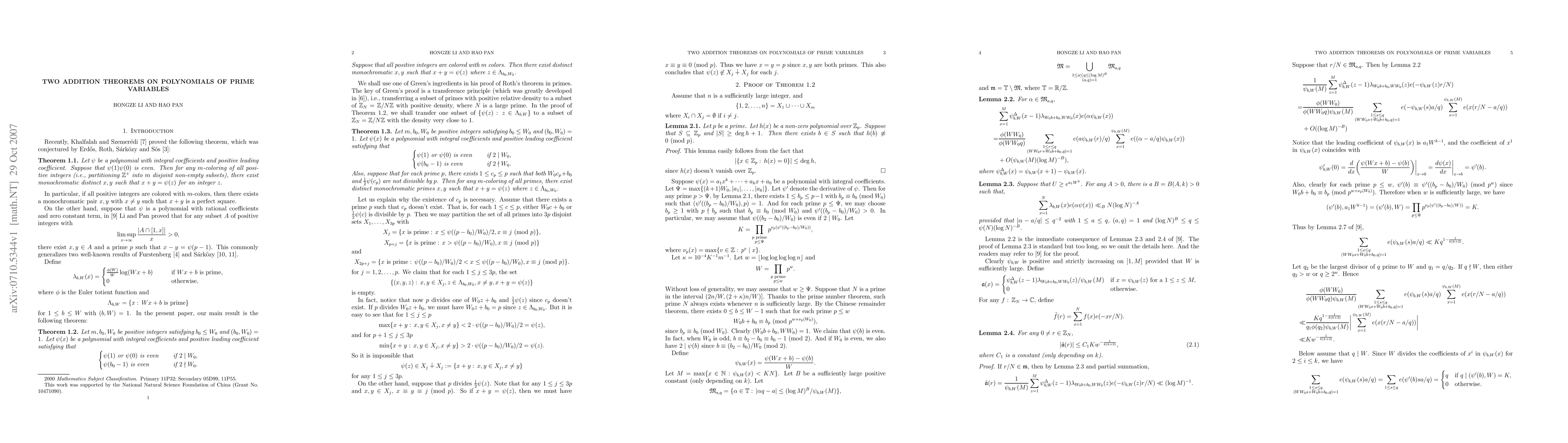 We extend a recent result of Khalfalah and Szemeredi to the polynomials of prime variables.
