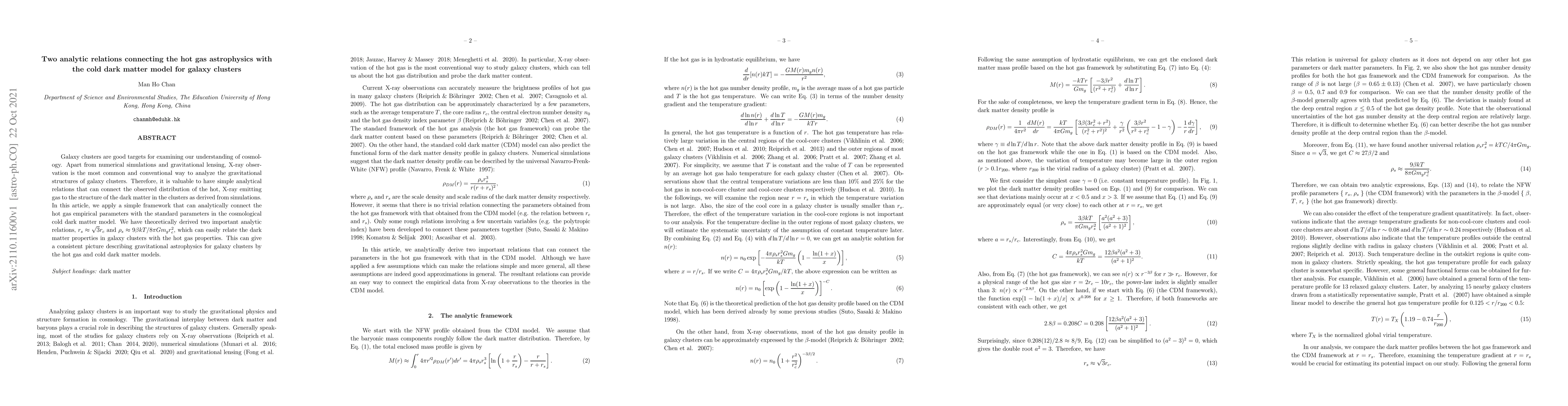 This paper develops two analytical relations that link the properties of hot, X-ray emitting gas in galaxy clusters to the underlying dark matter structure, providing a simplified framework for understanding galaxy cluster astrophysics. The derived relations are $r_s \approx \sqrt{3}r_c$ and $\rho_s \approx 9\beta kT/8 \pi Gm_gr_c^2$.