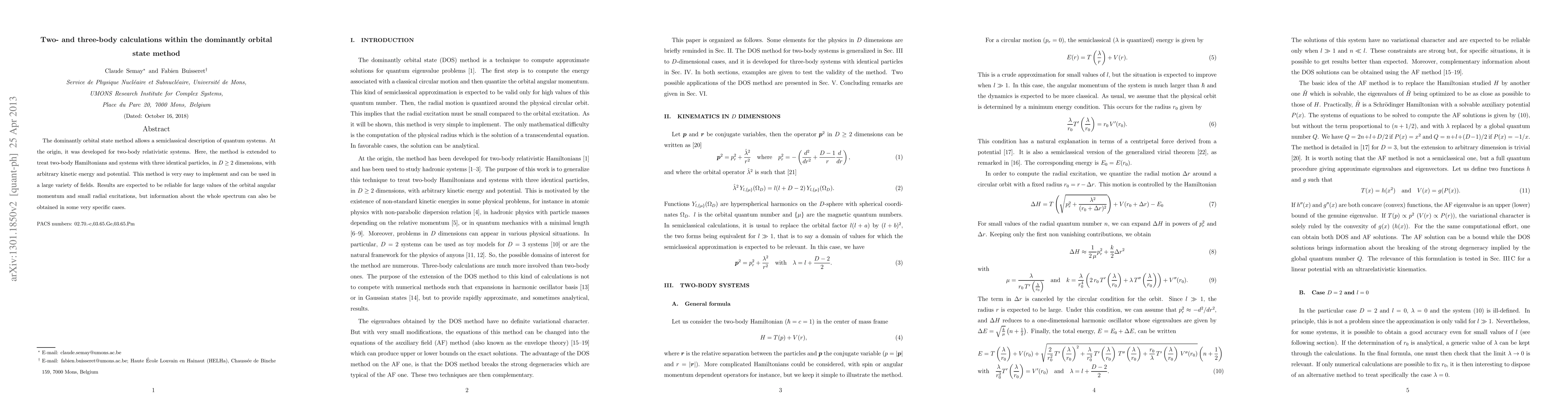 The dominantly orbital state method provides a semiclassical approach to quantum systems, initially designed for two-body relativistic systems. It is now extended to handle two-body Hamiltonians and three-particle systems in multiple dimensions, offering reliable results for large orbital angular momentum and small radial excitations.