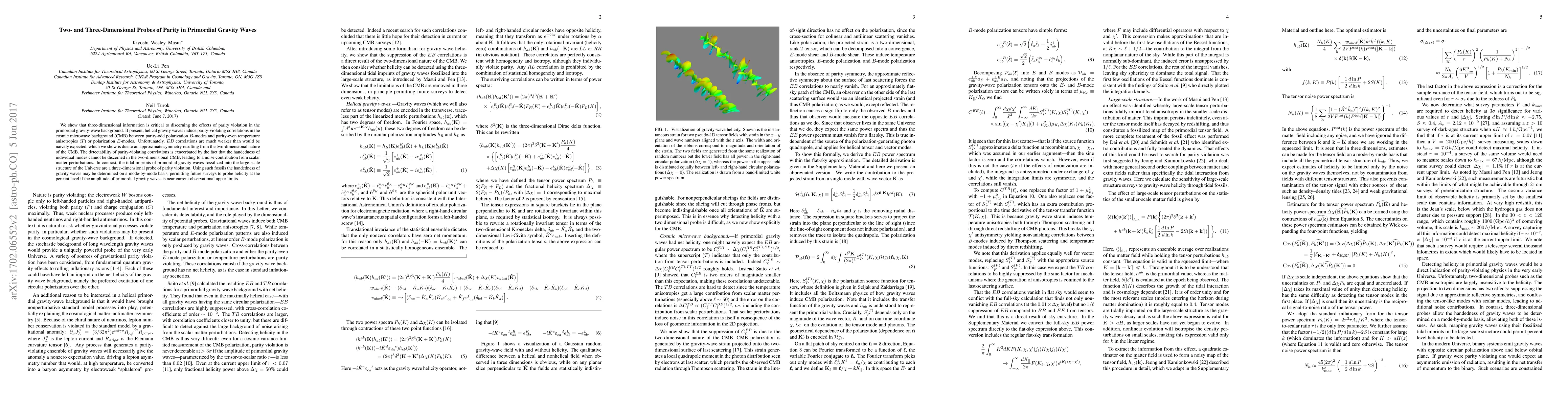 This paper demonstrates that three-dimensional observations are crucial for detecting parity violation in primordial gravity waves, as two-dimensional CMB data obscures these effects. It suggests that future surveys analyzing the large-scale structure could reveal the handedness of these waves, potentially probing helicity at the percent level.