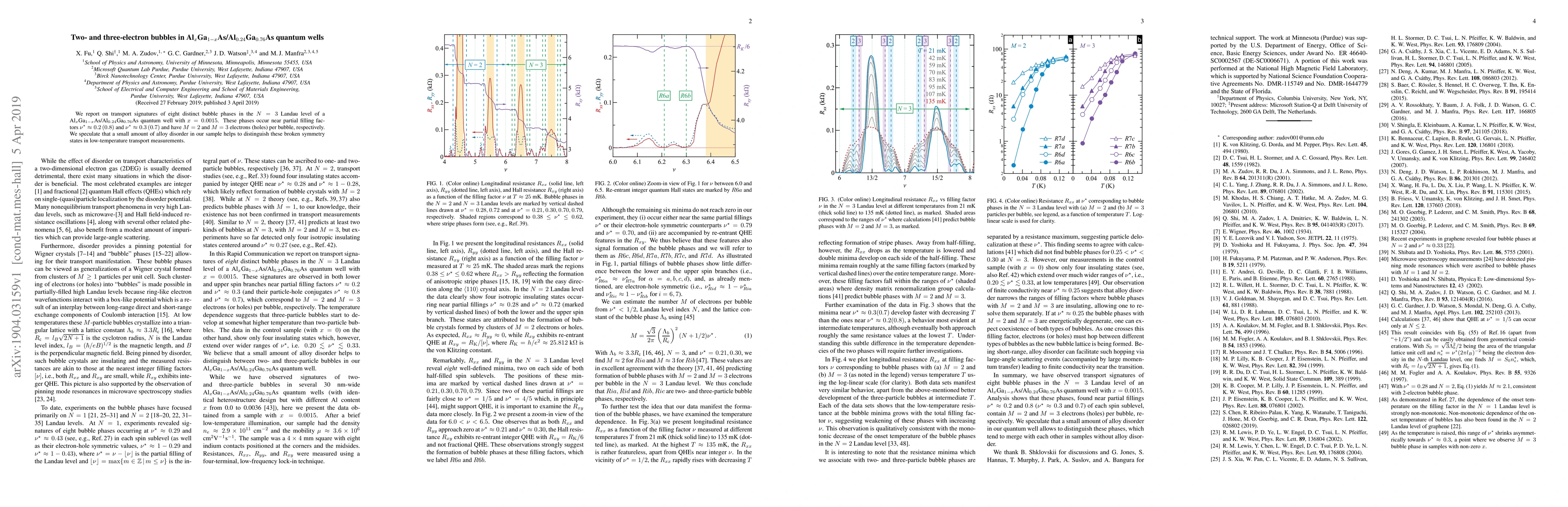 This paper investigates eight distinct bubble phases in the $N=3$ Landau level of an Al$_{x}$Ga$_{1-x}$As/Al$_{0.24}$Ga$_{0.76}$As quantum well, identifying transport signatures of two- and three-electron bubbles near filling factors $\nu^\star \approx 0.2\,(0.8)$ and $\nu^\star \approx 0.3\,(0.7)$. The study suggests that alloy disorder aids in distinguishing these broken symmetry states in low-temperature transport measurements.