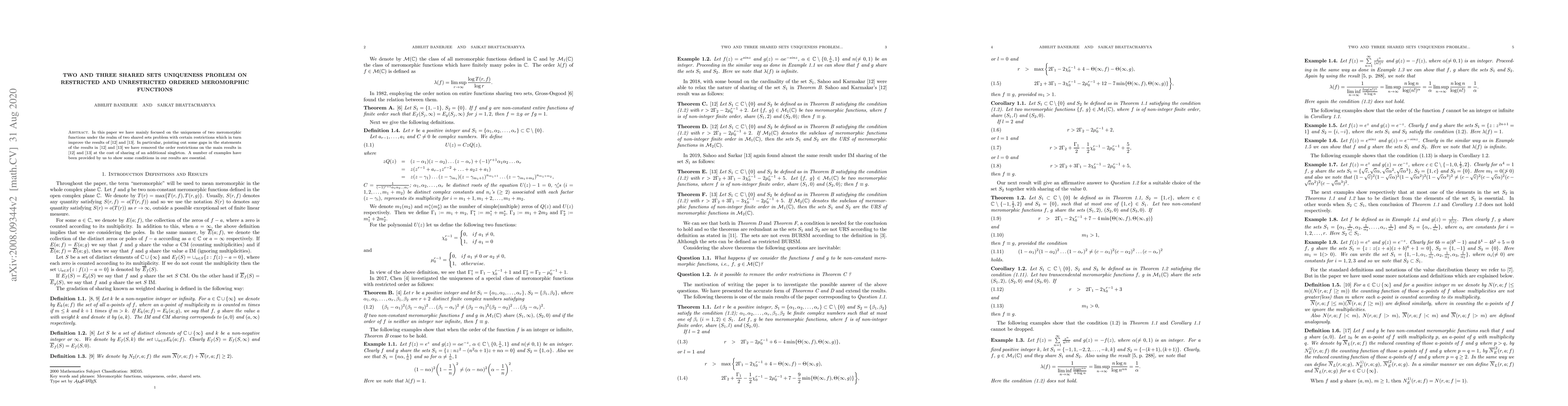 In this paper we have mainly focused on the uniqueness of two meromorphic functions under the realm of two shared sets problem with certain restrictions which in turn improve the results of { P. Sahoo and H. Karmakar, Uniqueness theorems related to weighted sharing of two sets, Acta Univ. Sapientiae, Mathematica, 10(2) (2018), 329-339} and {P. Sahoo and A. Sarkar, On the uniqueness of meromorphic functions sharing two sets, Bol. Soc. Mat. Mex., (2019), 1-7}. In particular, pointing out some gaps in the statements of the results in { P. Sahoo and H. Karmakar, Uniqueness theorems related to weighted sharing of two sets, Acta Univ. Sapientiae, Mathematica, 10(2) (2018), 329-339} and {P. Sahoo and A. Sarkar, On the uniqueness of meromorphic functions sharing two sets, Bol. Soc. Mat. Mex., (2019), 1-7}. we have removed the order restrictions on the main results in { P. Sahoo and H. Karmakar, Uniqueness theorems related to weighted sharing of two sets, Acta Univ. Sapientiae, Mathematica, 10(2) (2018), 329-339} and {P. Sahoo and A. Sarkar, On the uniqueness of meromorphic functions sharing two sets, Bol. Soc. Mat. Mex., (2019), 1-7} at the cost of sharing of an additional singleton. A number of examples have been provided by us to show some conditions in our results are essential.