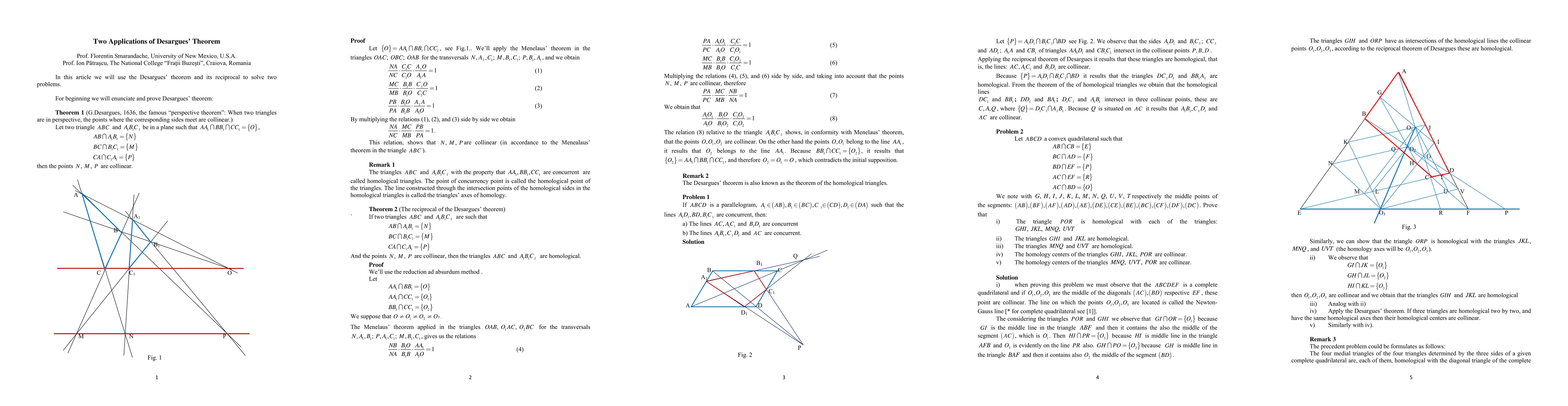 In this article we use the Desargues' theorem and its reciprocal to solve two problems.