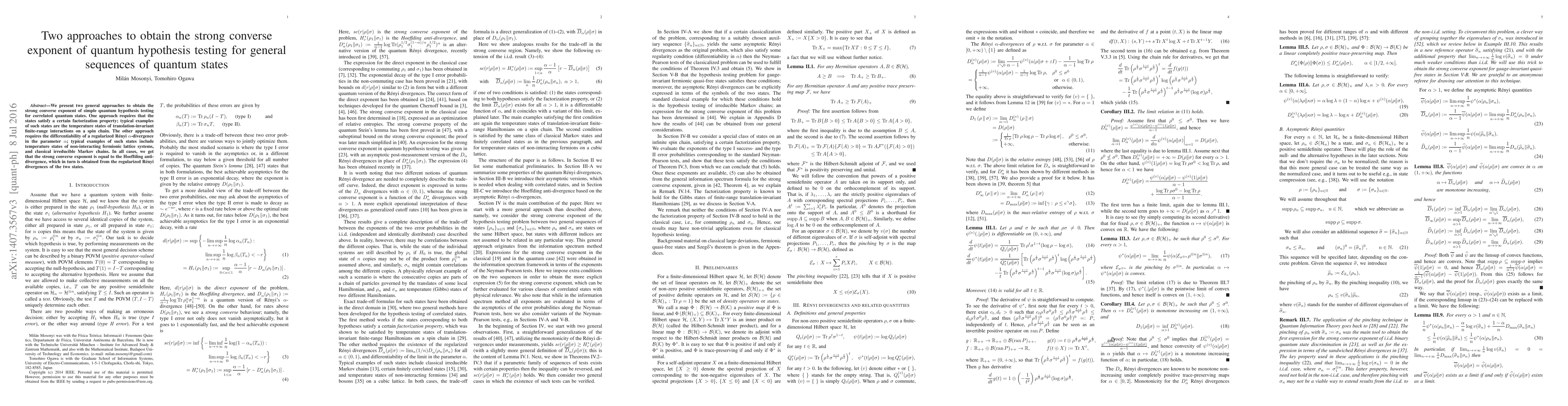 This paper presents two methods for determining the strong converse rate in quantum hypothesis testing for correlated quantum states. The first method applies to states with a factorization property, such as temperature states in spin chains, while the second method applies to states where a regularized R\'enyi divergence is differentiable, like temperature states in fermionic lattice systems. Both approaches yield the same strong converse exponent, the Hoeffding anti-divergence.