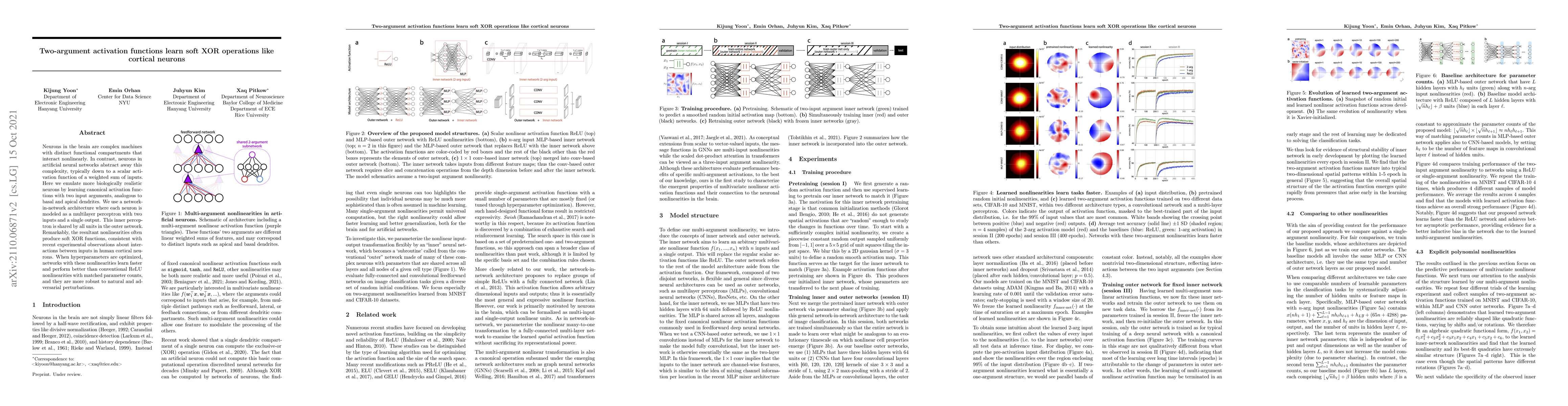 This paper proposes using two-argument activation functions to emulate more biologically realistic neurons by incorporating interactions similar to those in human cortical neurons. Networks employing these nonlinearities, modeled through a network-in-network architecture, learn soft XOR functions more effectively and achieve better performance and robustness compared to conventional ReLU activations.