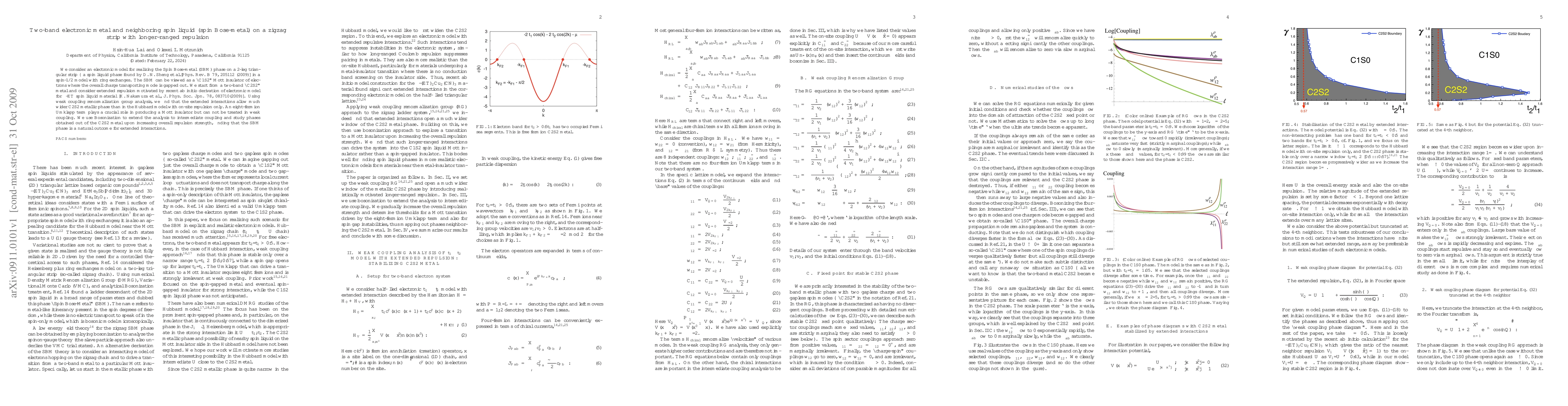 This paper explores an electronic model on a zigzag strip that realizes a Spin Bose-metal (SBM) phase, transitioning from a two-band metal to a spin liquid phase via extended repulsion. The analysis reveals that extended interactions significantly broaden the metallic phase compared to on-site repulsion alone, leading naturally to the SBM phase.
