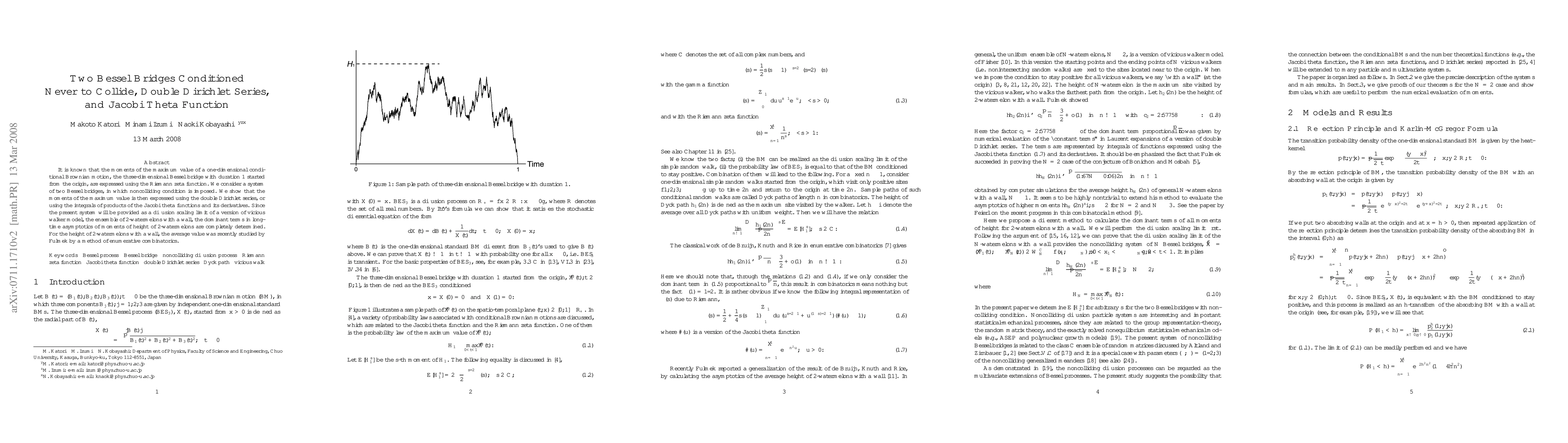 Researchers studied a system of two Bessel bridges that never collide, finding that moments of maximum value can be expressed using the double Dirichlet series or Jacobi theta functions.