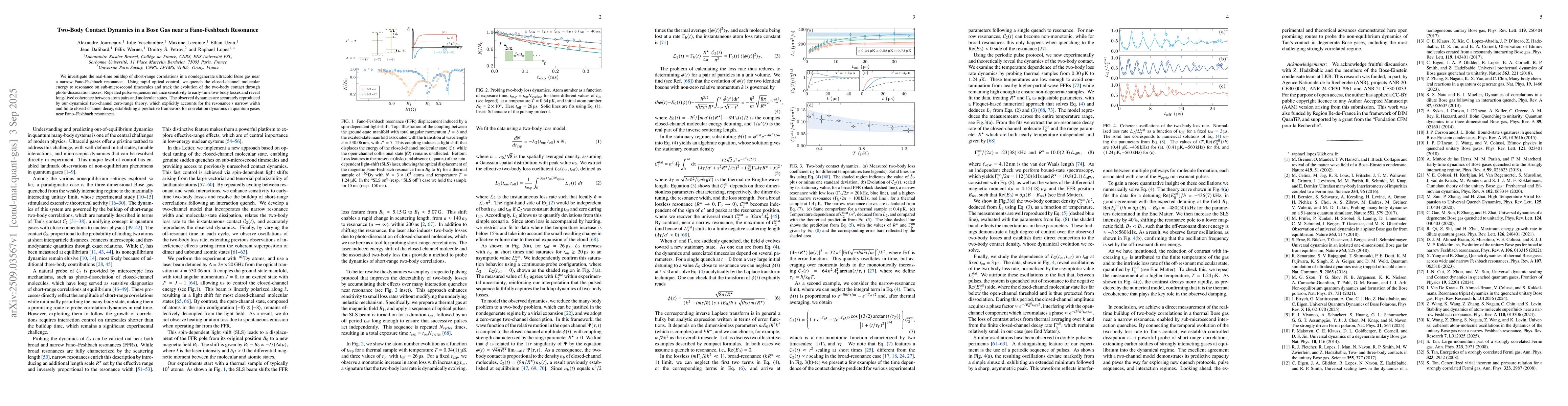 We investigate the real-time buildup of short-range correlations in a nondegenerate ultracold Bose gas near a narrow Fano-Feshbach resonance. Using rapid optical control, we quench the closed-channel molecular energy to resonance on sub-microsecond timescales and track the evolution of the two-body contact through photo-dissociation losses. Repeated pulse sequences enhance sensitivity to early-time two-body losses and reveal long-lived coherence between atom pairs and molecular states. The observed dynamics are accurately reproduced by our dynamical two-channel zero-range theory, which explicitly accounts for the resonance's narrow width and finite closed-channel decay, establishing a predictive framework for correlation dynamics in quantum gases near Fano-Feshbach resonances.