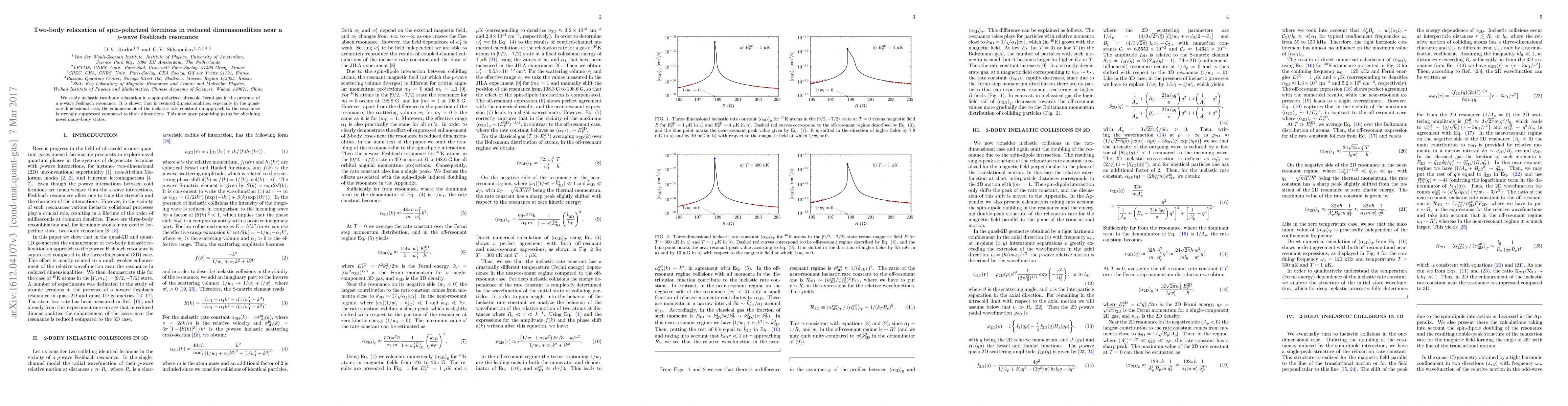This paper investigates the inelastic two-body relaxation dynamics in spin-polarized ultracold Fermi gases near a p-wave Feshbach resonance, revealing that the enhancement of the relaxation rate is significantly reduced in lower dimensionalities, particularly in quasi-one-dimensional systems, which could lead to new many-body states.