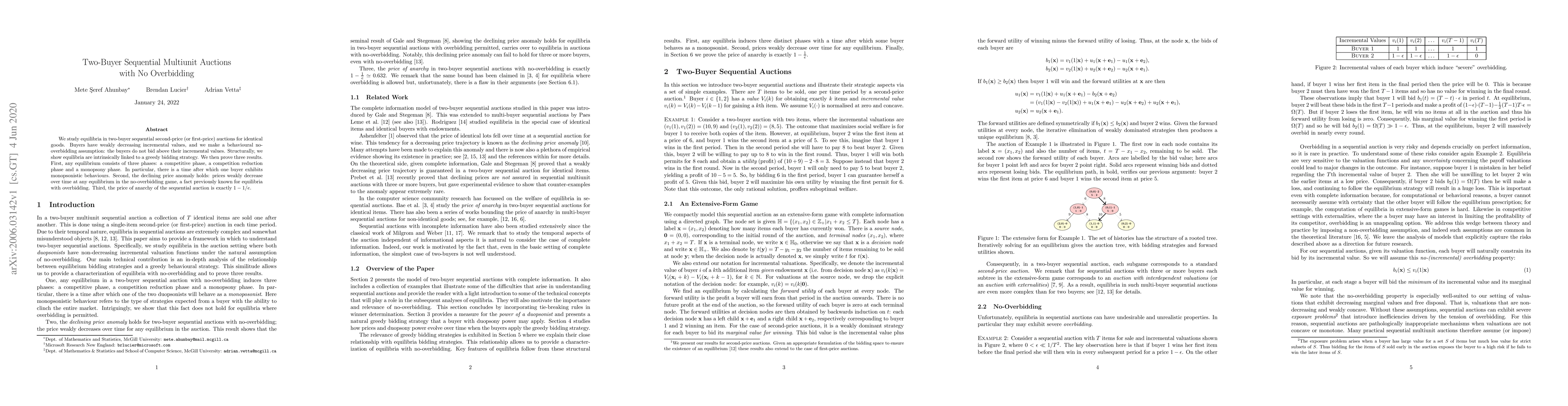 This paper examines equilibria in two-buyer sequential auctions for identical goods under a no-overbidding assumption, revealing that equilibria consist of three phases: competitive, competition reduction, and monopsony. It also finds that prices weakly decrease over time, and the price of anarchy is exactly $1 - 1/e$.
