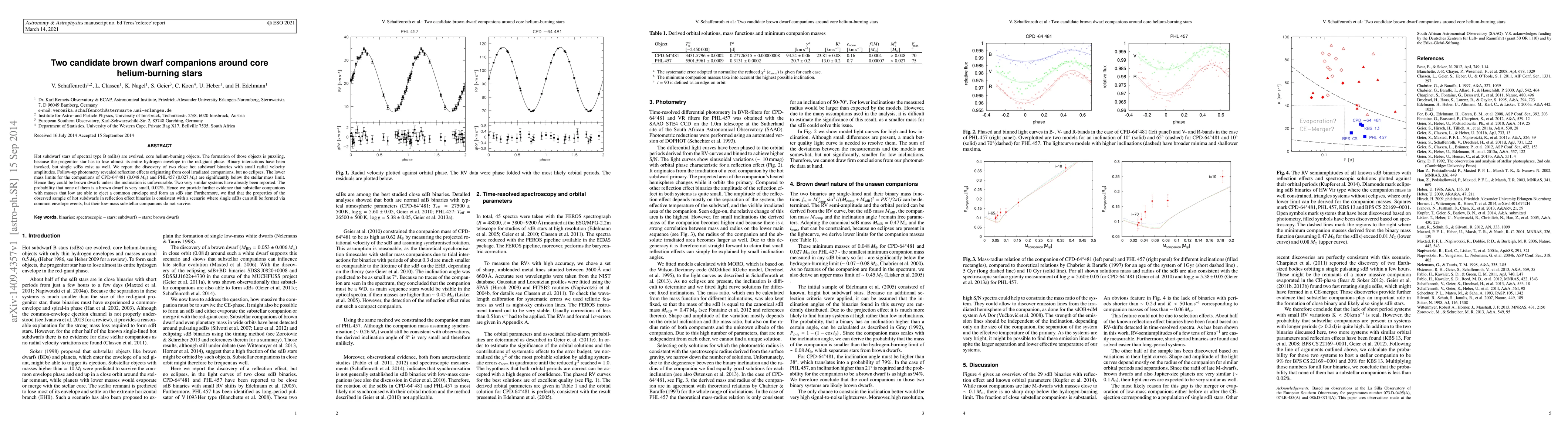 The paper reports the discovery of two candidate brown dwarf companions around core helium-burning hot subdwarf stars (sdBs), suggesting that substellar objects with such low masses can form through common envelope ejection processes. The findings provide evidence that low-mass substellar companions often do not survive these events.